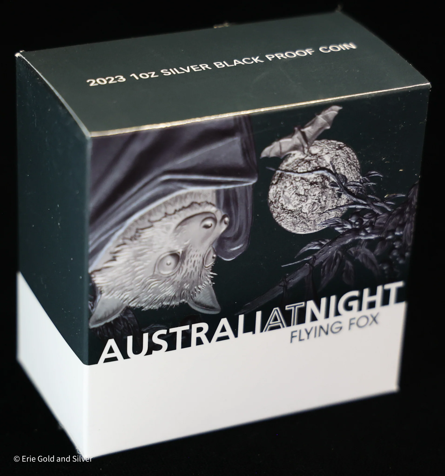 2023 $1 Australia Night Flying Fox 1 oz Silver Black Proof Coin in OGP