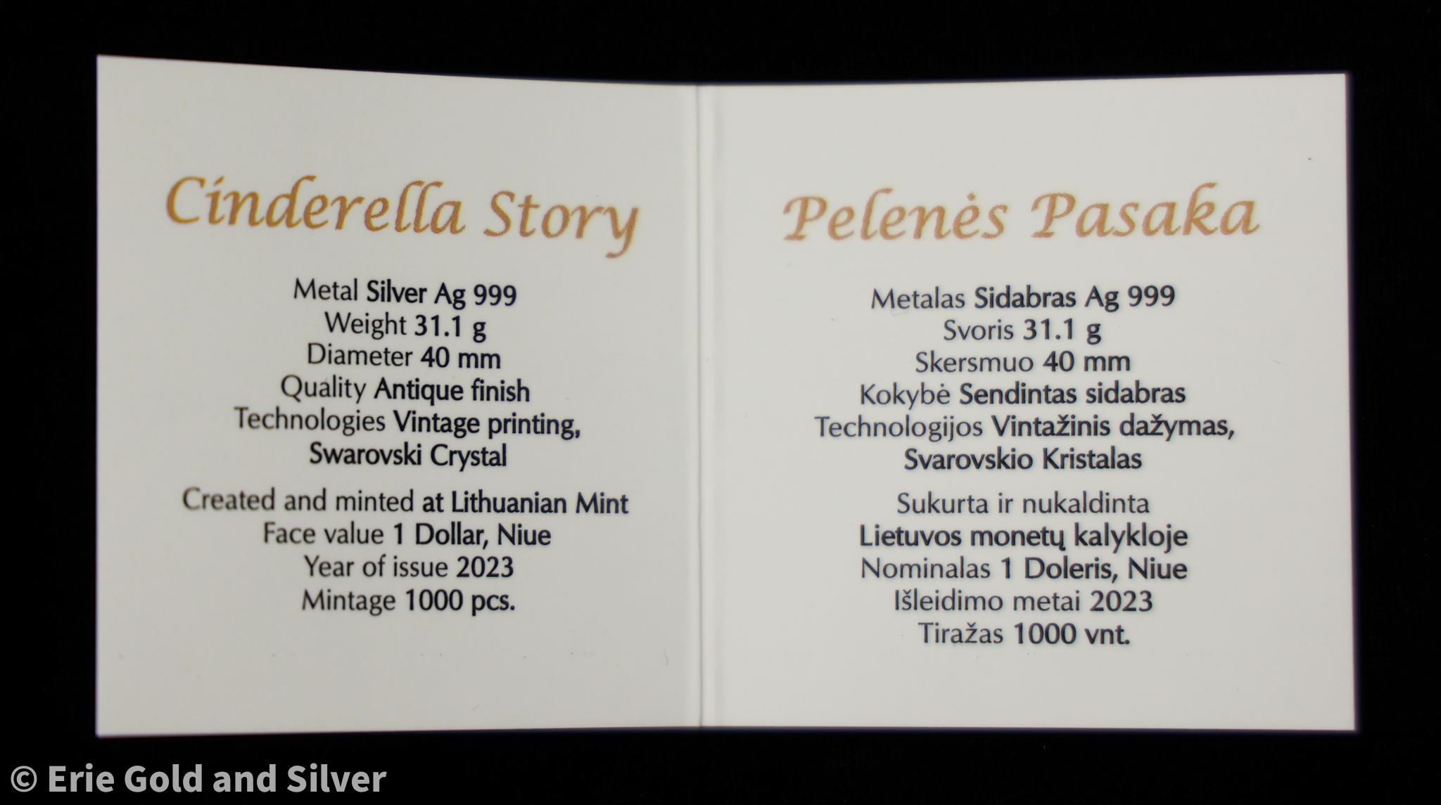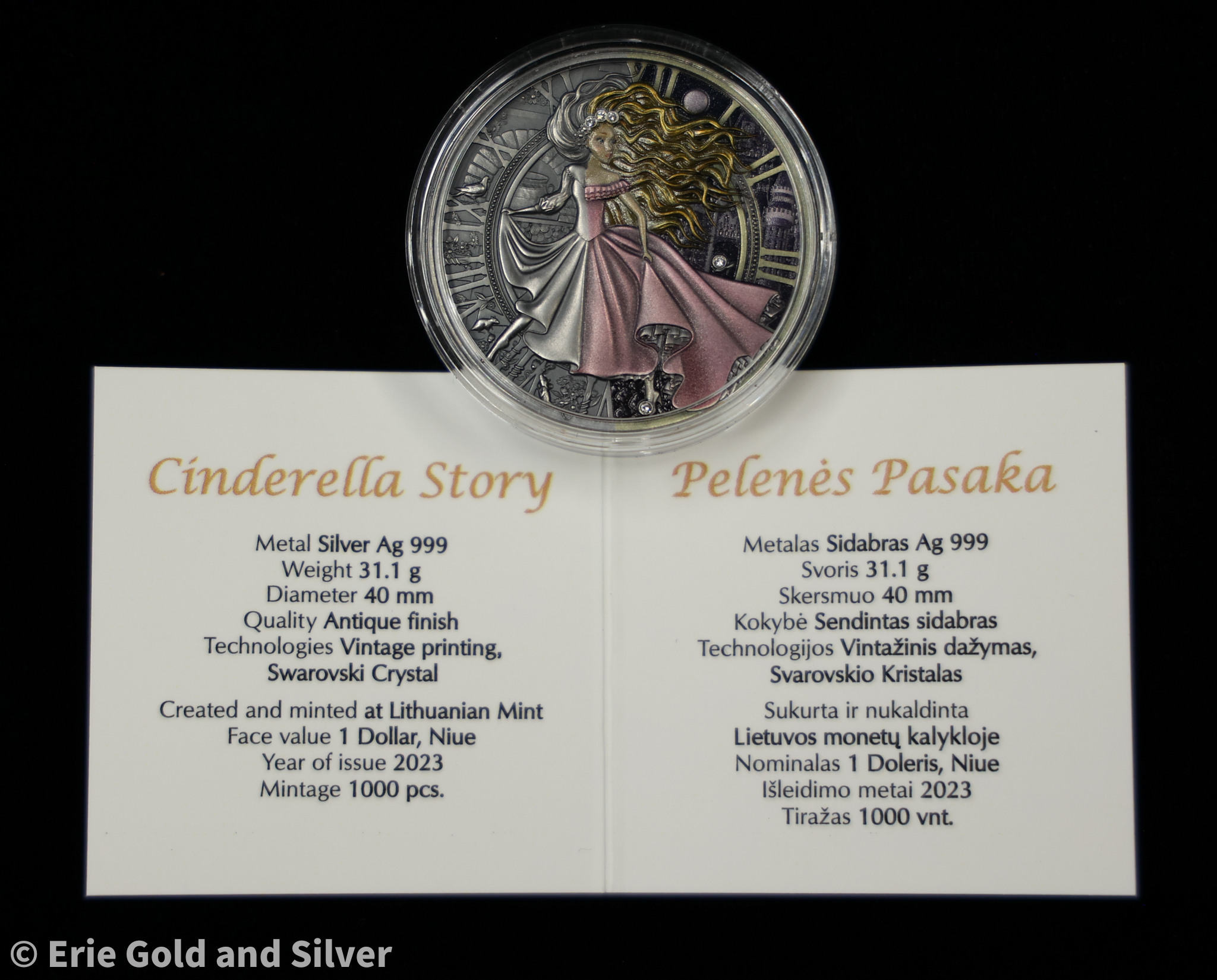 2023 $1 Niue 1 oz Silver Lithuanian Mint Cinderella Story Box & COA