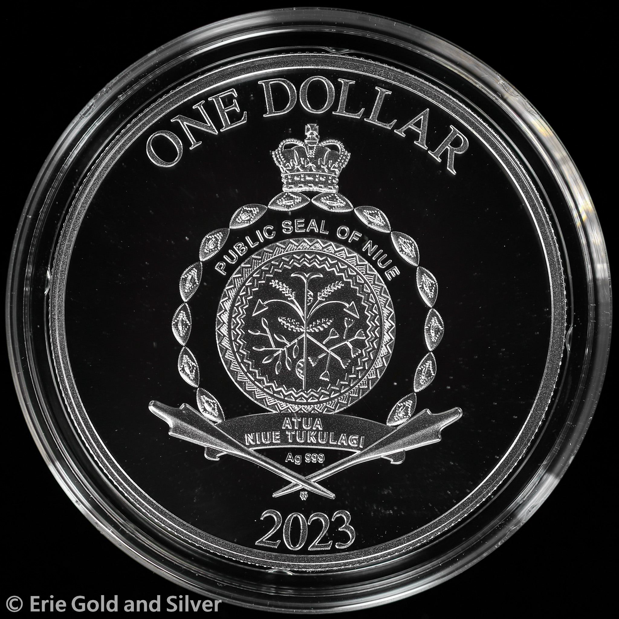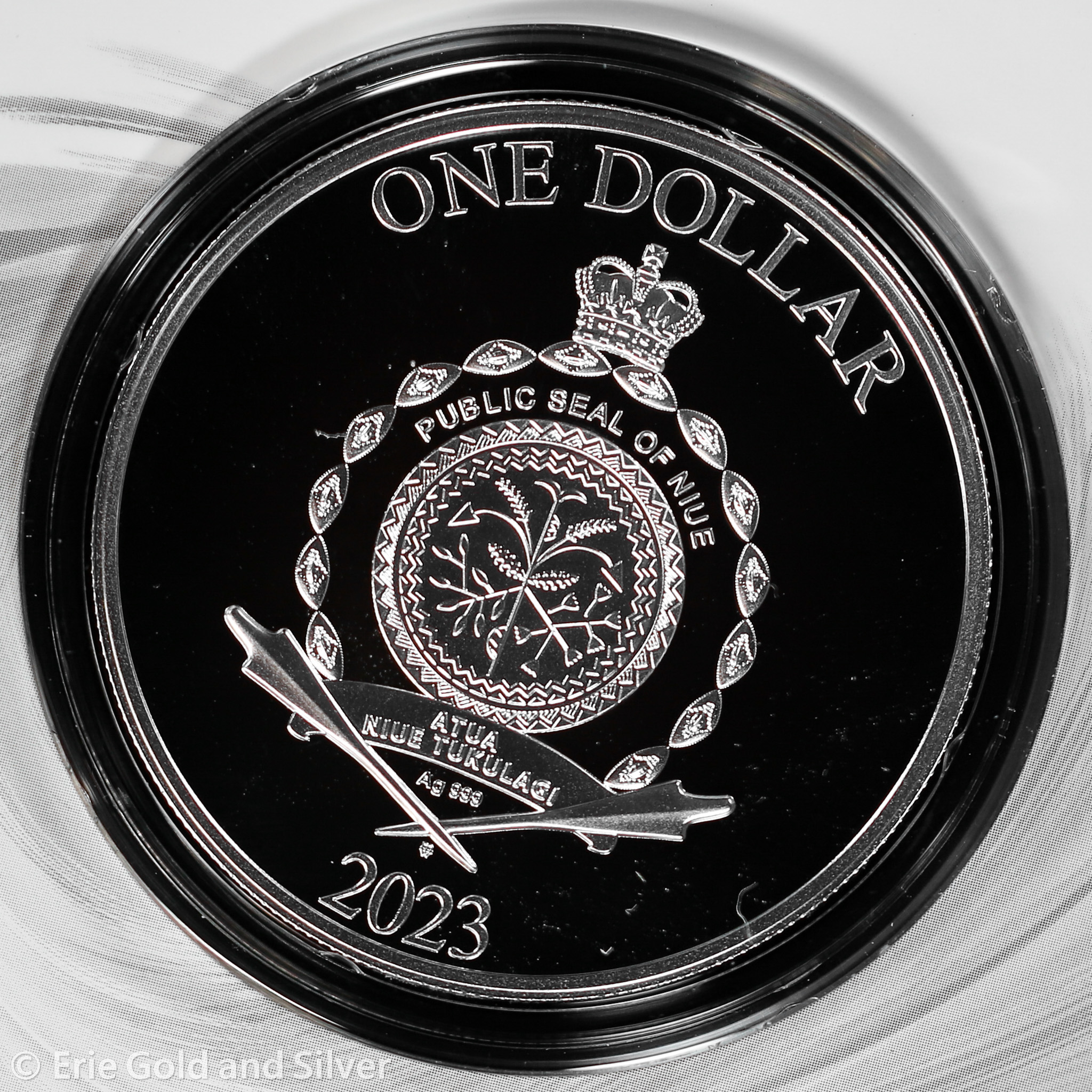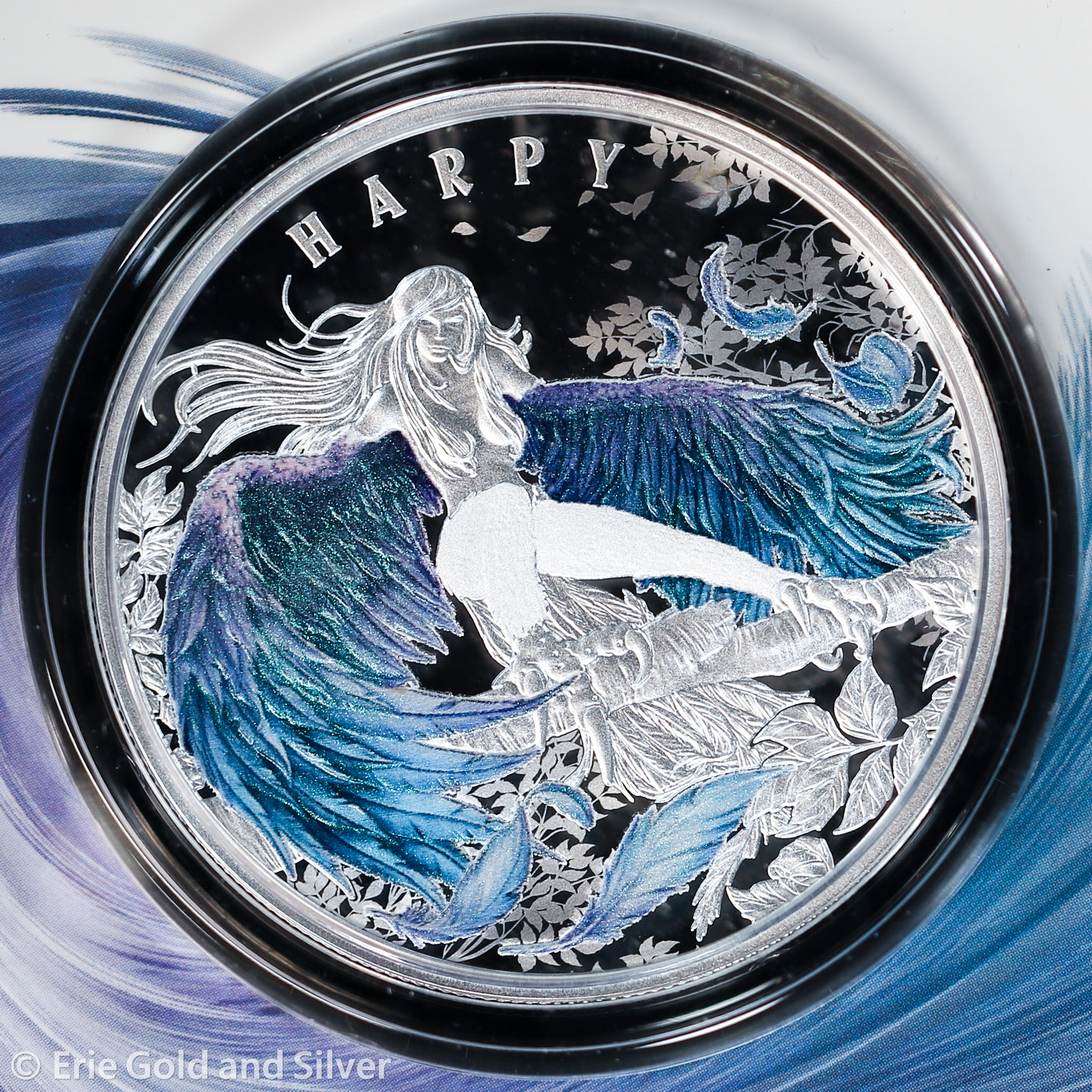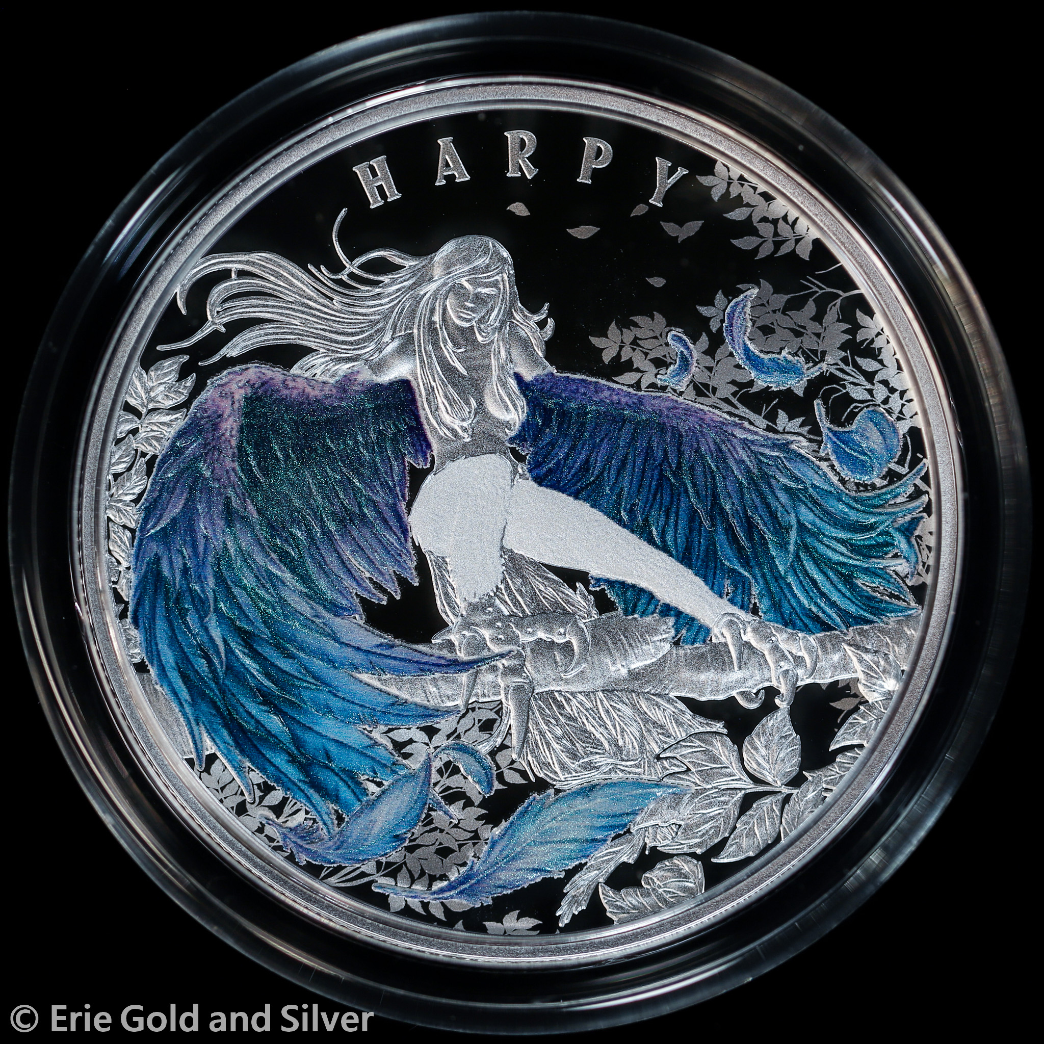 For sale is a 2023 $1 Niue Mint of Poland Harpy 1 oz Silver Colorized Proof Coin in OGP.