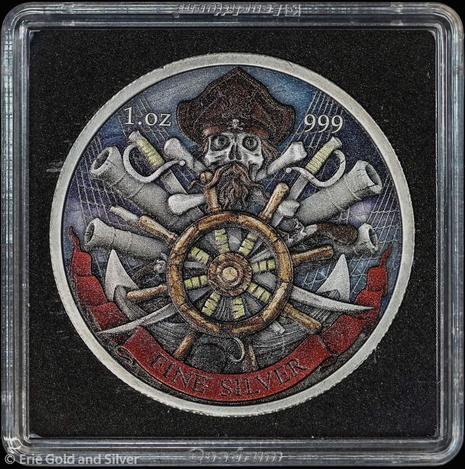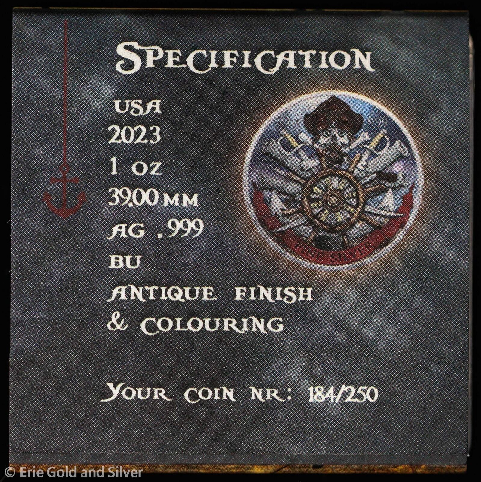 2023 1 oz Silver Antique Finish Colorized Dead Men Tell No Tales Captain Kidd Ed