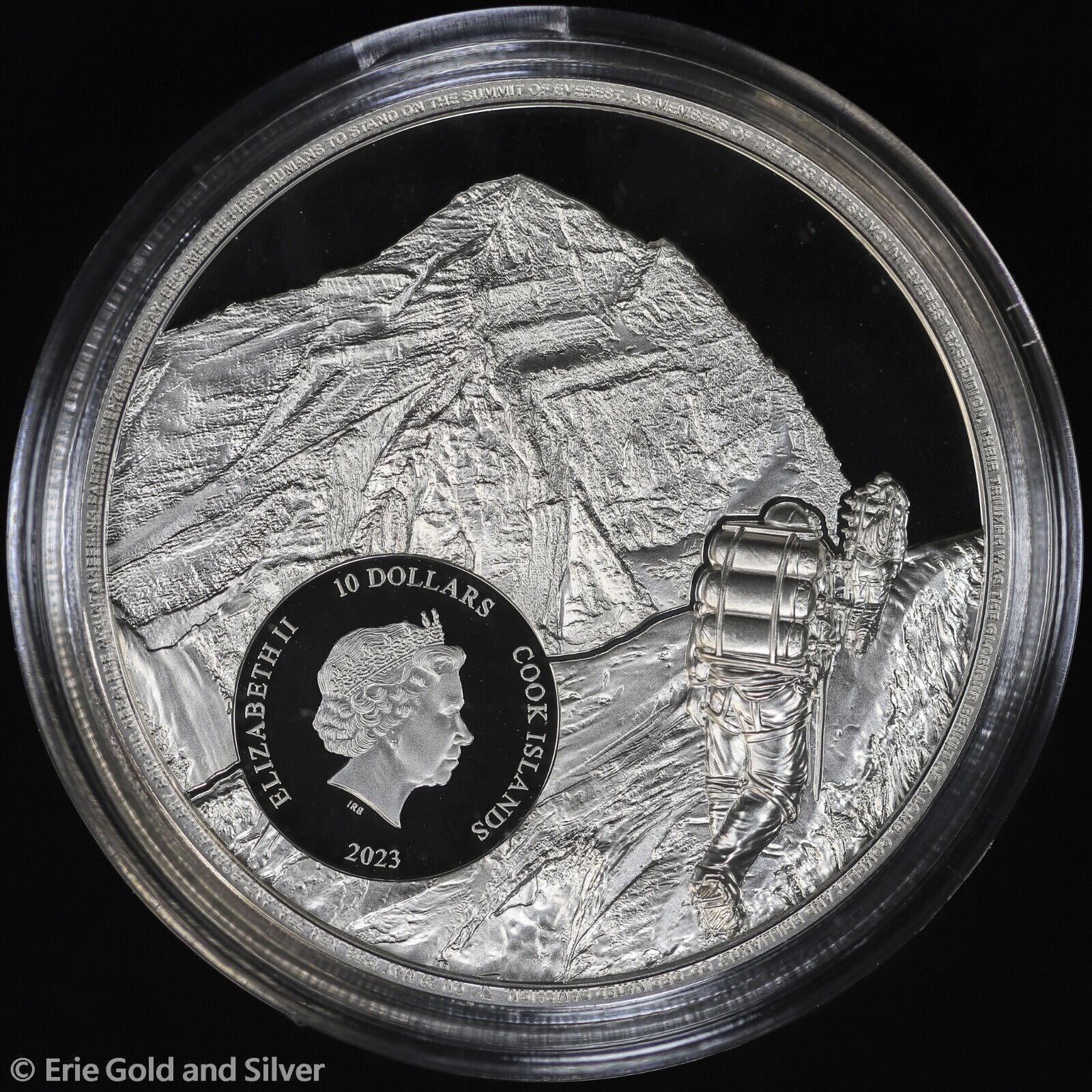 2023 $10 Cook Islands Mt Everest First Ascent 2 oz Silver UHR Proof Coin in OGP