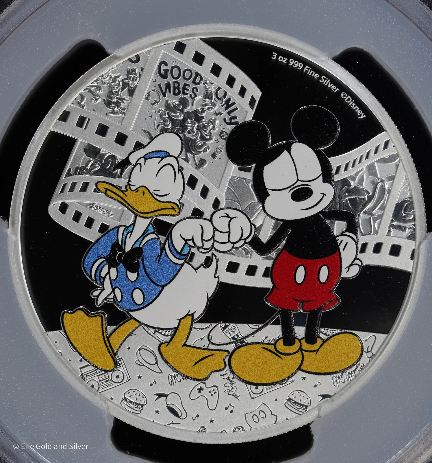 2023 $10 Niue 3 oz Silver Proof Colorized Mickey and Donald PCGS PR 70 DCAM