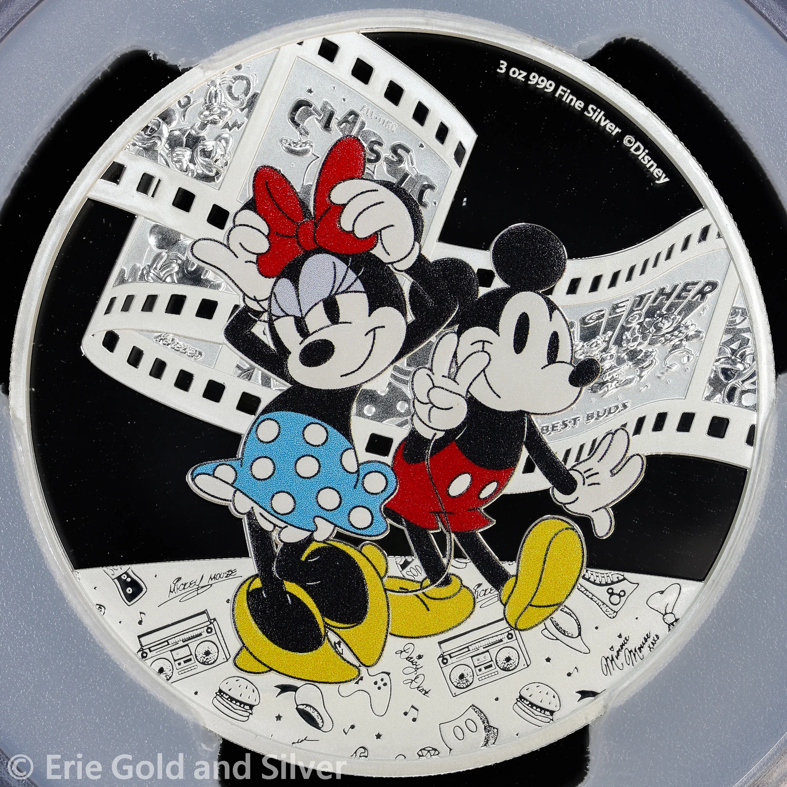 2023 $10 Niue 3 oz Silver Proof Colorized Mickey and Minnie PCGS PR 70 DCAM