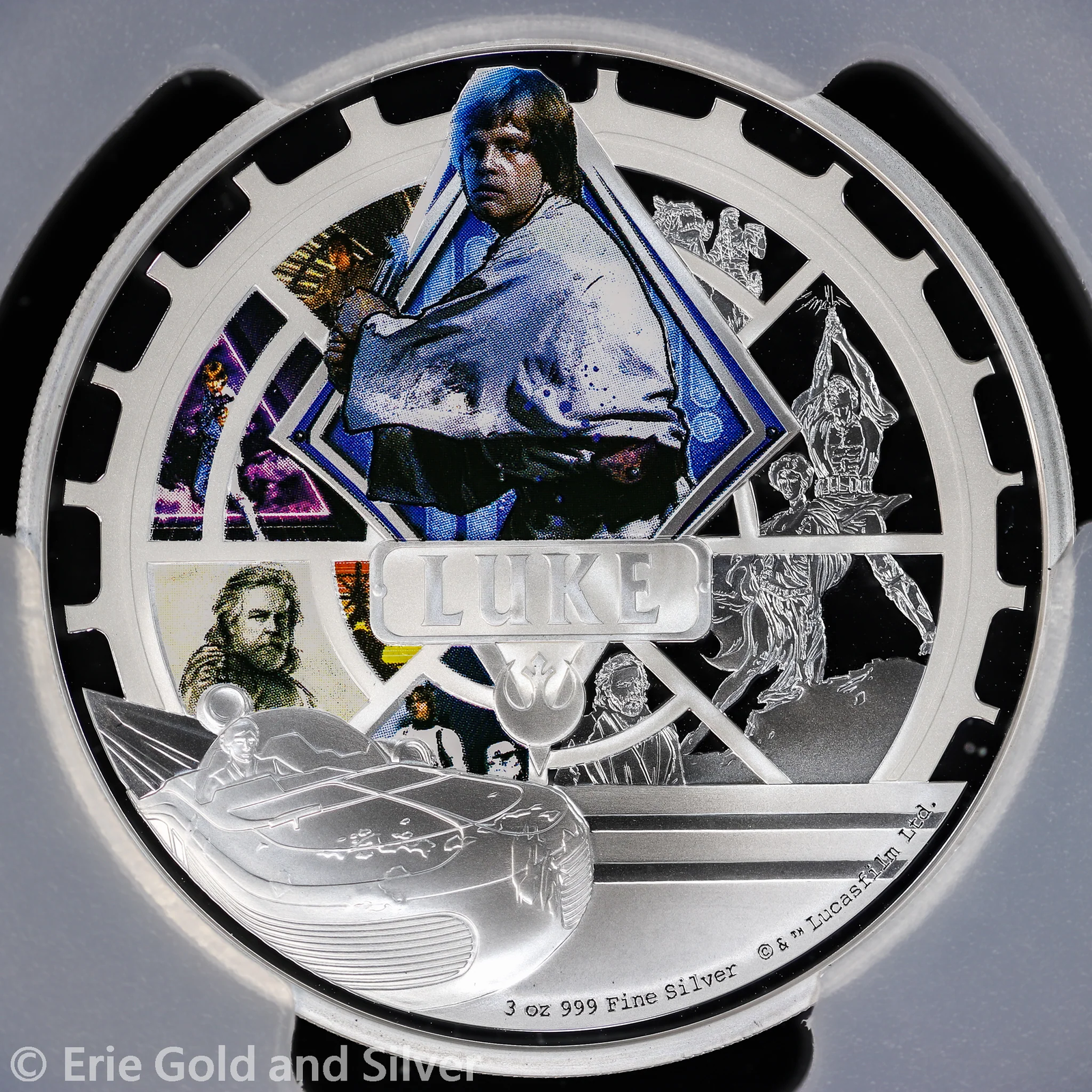 2023 $10 Niue 3 oz Silver Proof Star Wars Luke Skywalker PCGS PR 70 DCAM