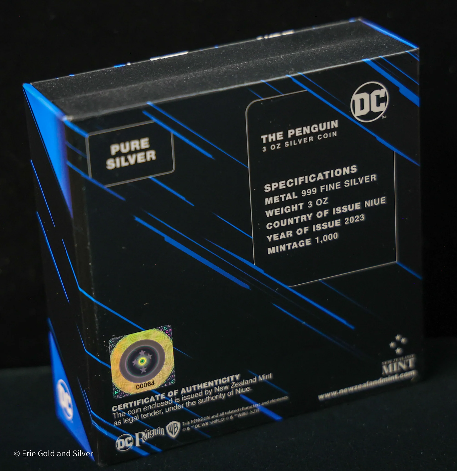 For sale is a 2023 $10 Niue Villains: The Penguin 3 oz Silver Colorized Round in OGP. View pictures for details and condition. There are multiple available, so the coin you receive may not be the exact coin pictured, however it will be similar quality. Feel free to contact us with any questions.