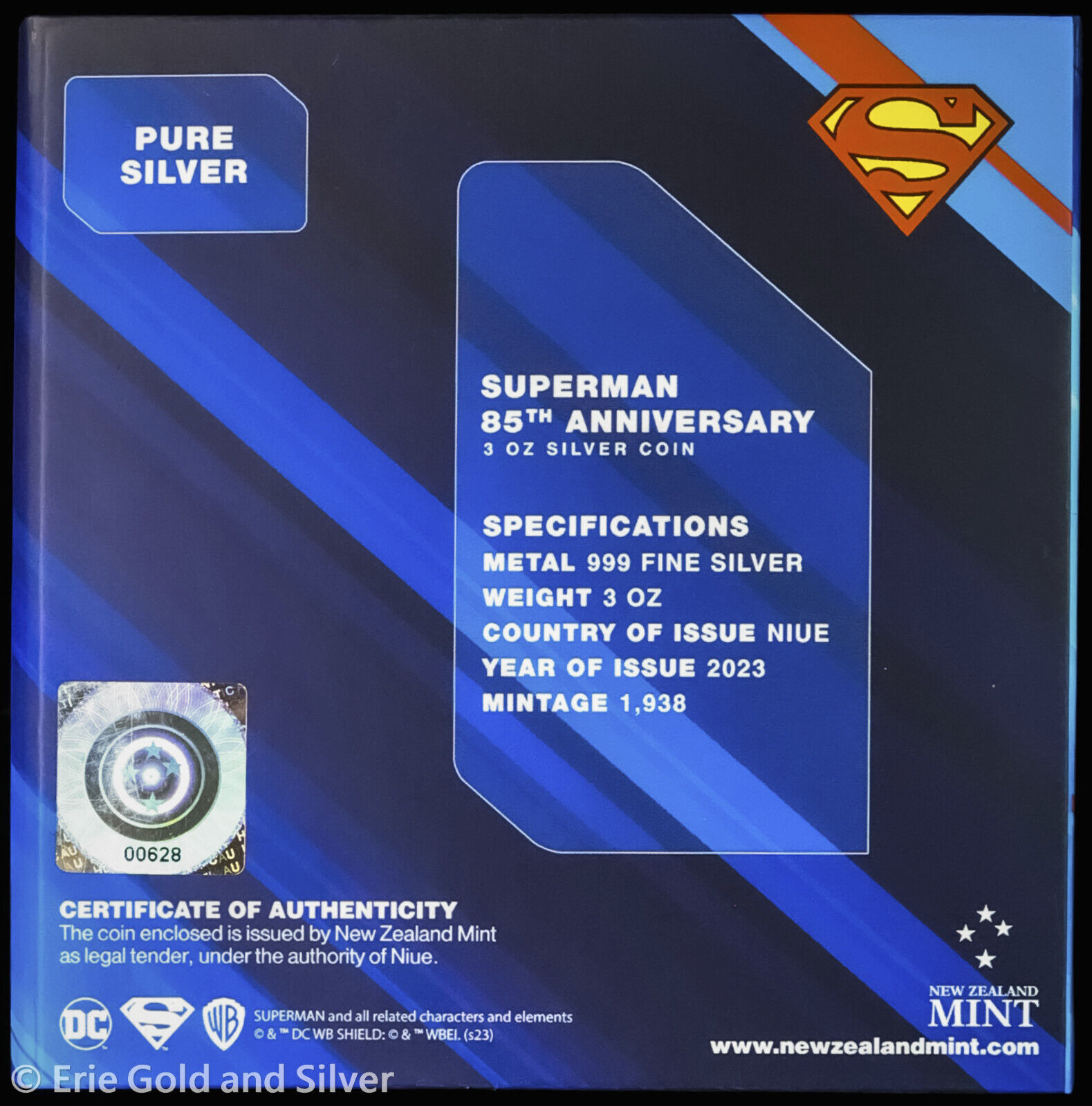 2023 $10 Niue DC Superman 85th Anniversary 3 oz Silver Coin in OGP