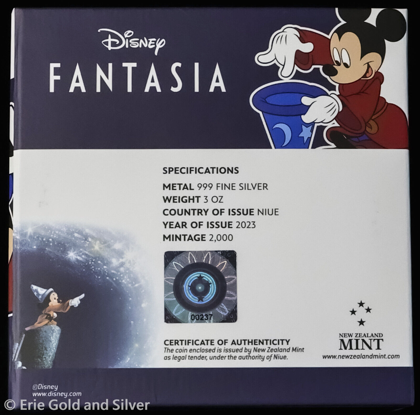 2023 $10 Niue Disney Cinema Masterpieces Fantasia 3 oz Silver Proof Coin in OGP
