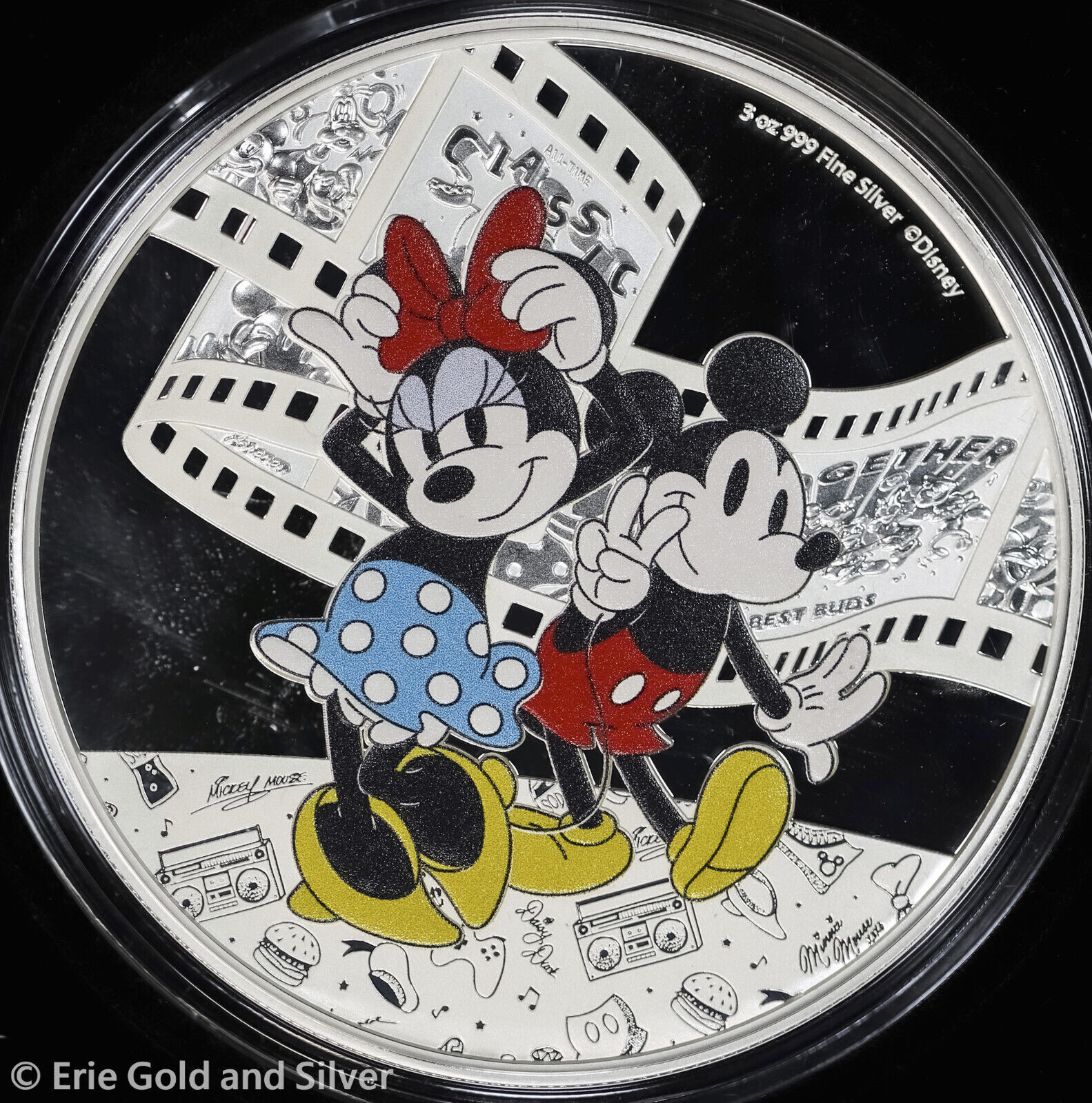 2023 $10 Niue Disney Mickey & Minnie 3 oz Silver Colorized Coin in OGP