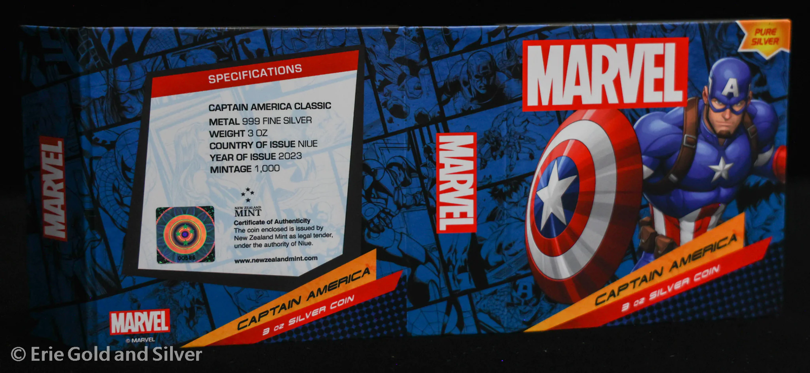 For sale is a 2023 $10 Niue Marvel Captain America Classic 3 oz Silver Coin. View pictures for details and condition. There are multiple available, so the coin you receive may not be the exact coin pictured. However, it will be similar quality. Feel free to contact us with any questions.