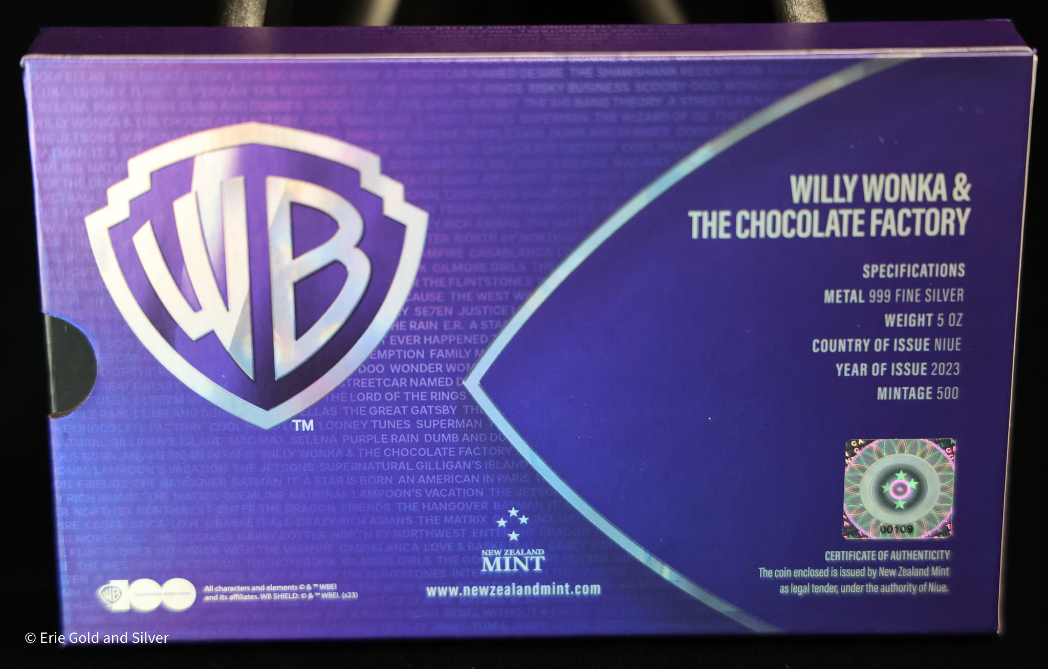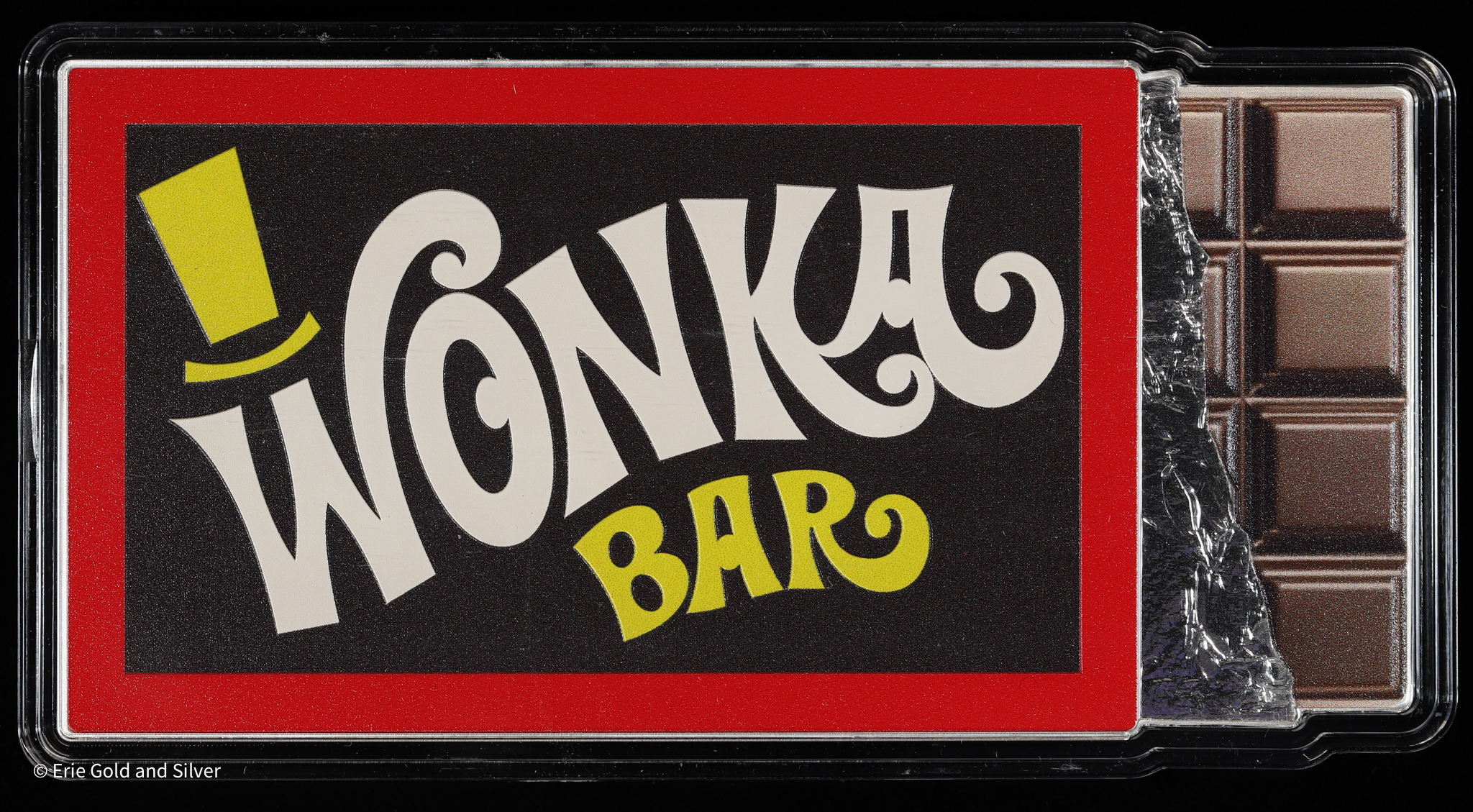 For Sale is a 2023 $10 Niue Willy Wonka & The Chocolate Factory 5 oz silver Bar in OGP