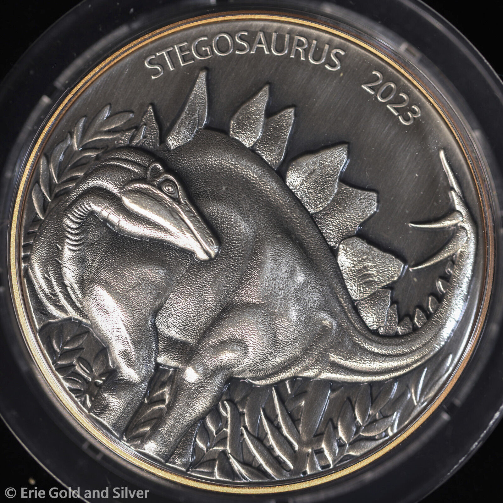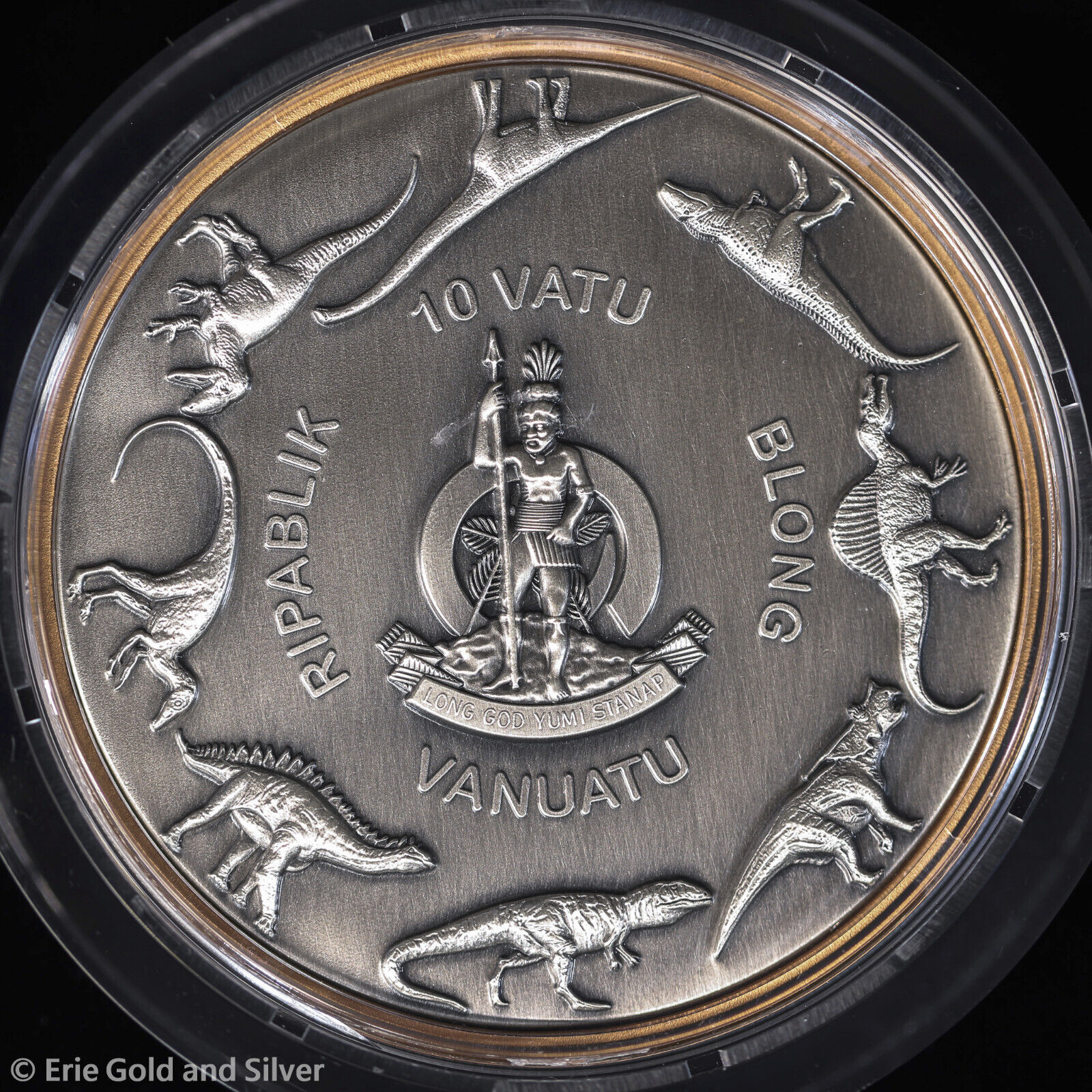 2023 10 Vatu Vanuatu Double Giant Stegosaurus 10 g Silver with 145 g Copper Core
