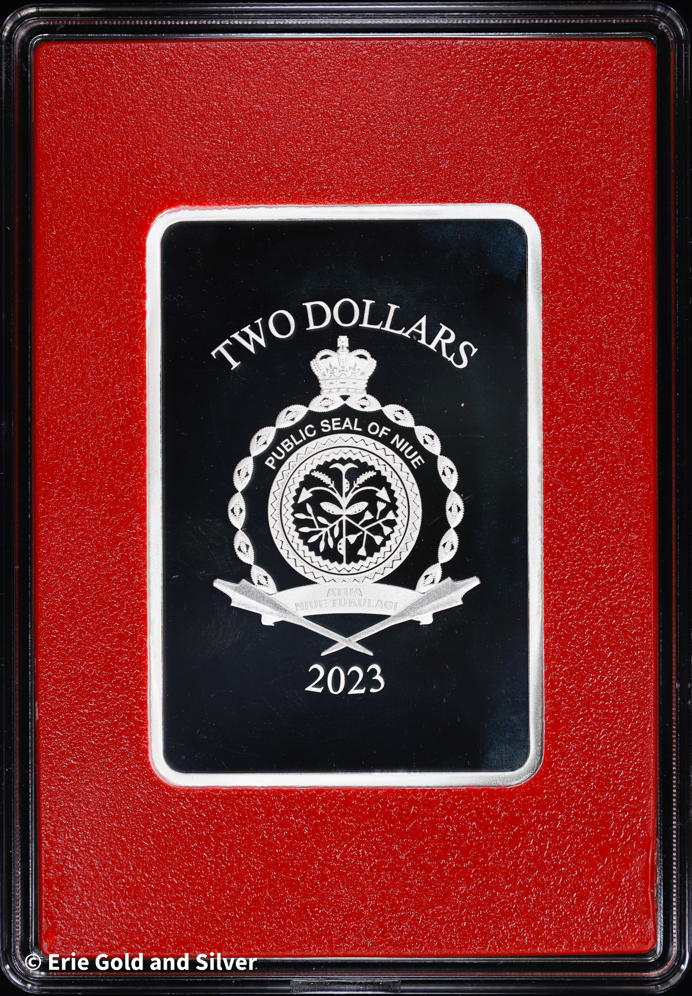 2023 $2 Niue 1 oz Silver Reverse Flash Trading Card Ruby #33/50