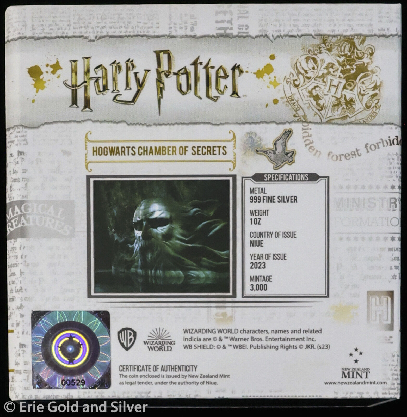 2023 $2 Niue Harry Potter Hogwarts Chamber of Secrets 1 oz Silver Coin in OGP
