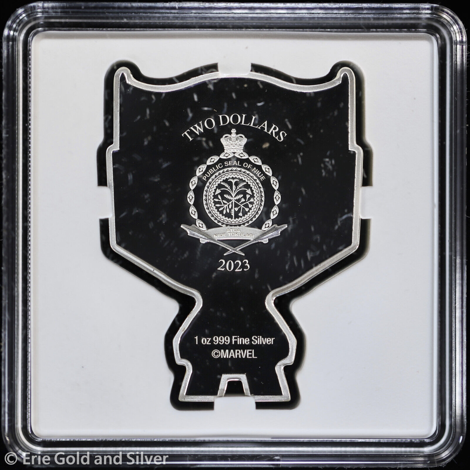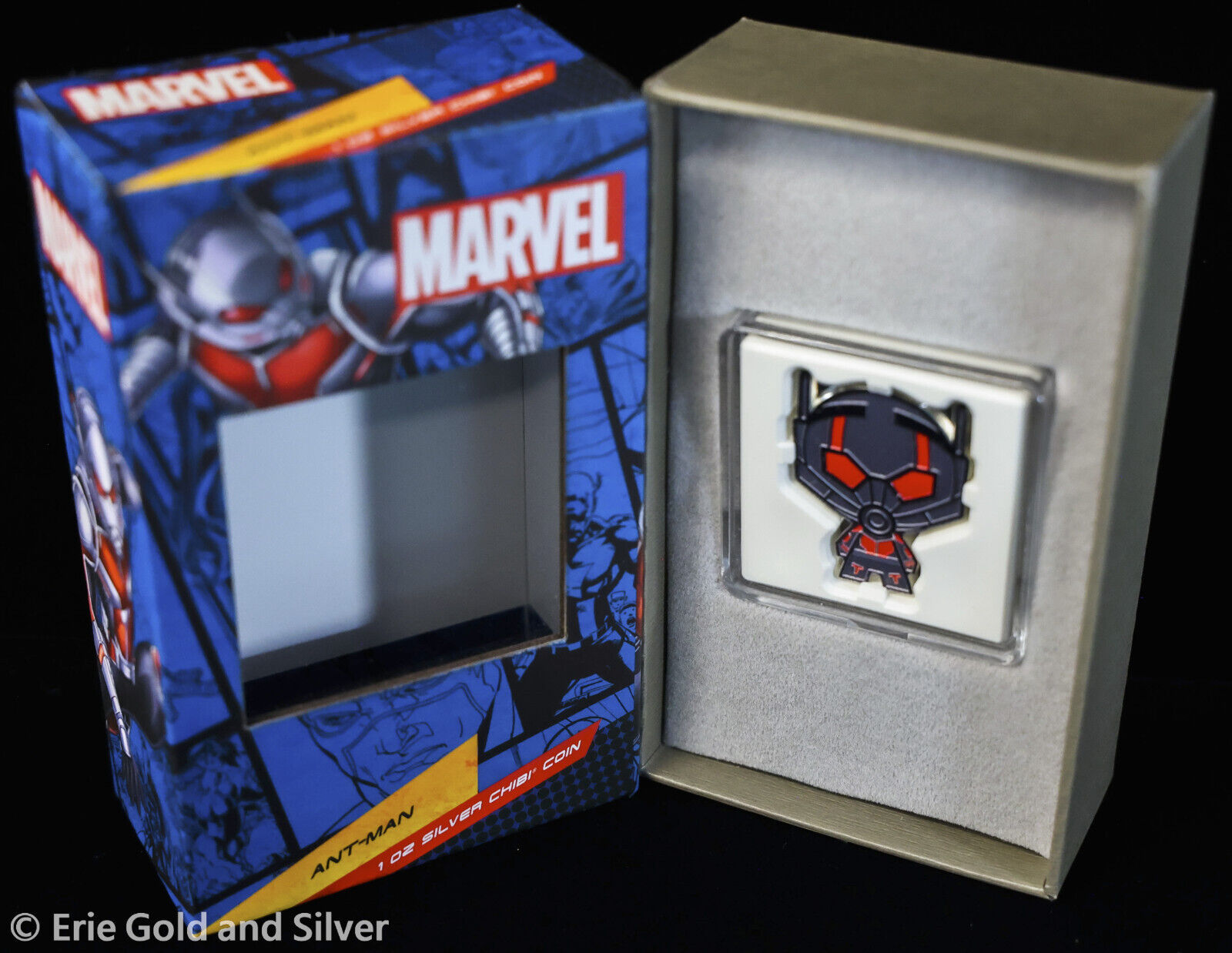 For sale is a 2023 $2 Niue Marvel Ant-Man 1 oz Silver Chibi Coin in OGP.