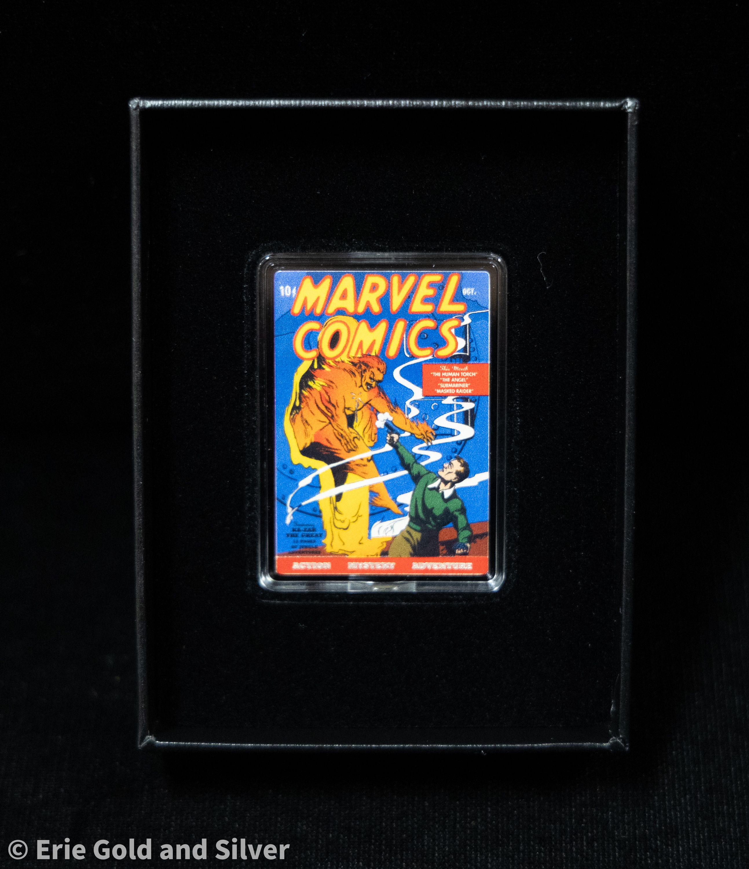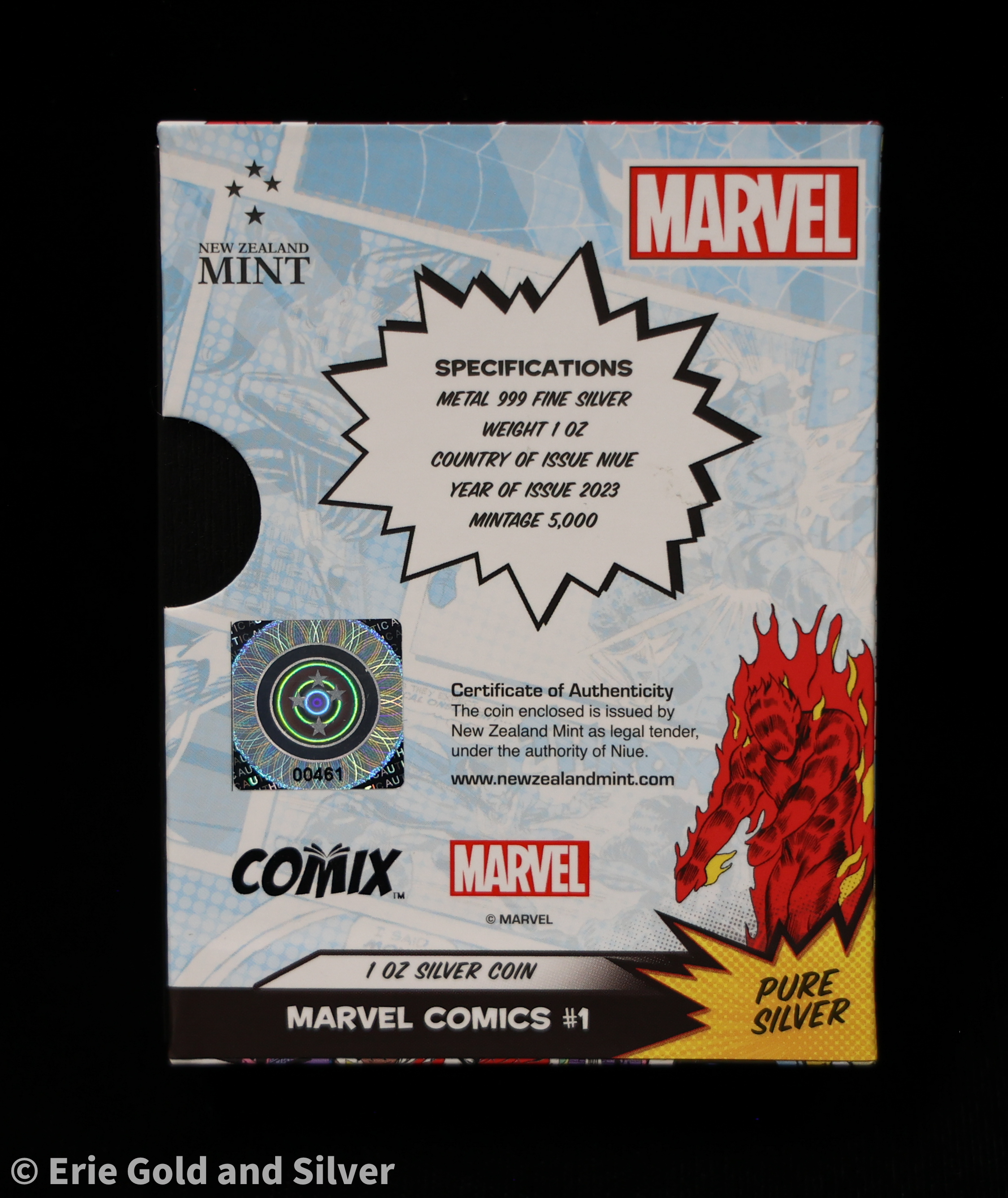 Celebrate the origin of a comic book empire with the 2023 $2 Niue Marvel Comics #1 coin, featuring the historic 1939 cover in full color on 1 oz of .999 fine silver. Officially licensed and housed in original government packaging, this tribute to Marvel’s first issue is a foundational piece for any serious superhero coin collection.