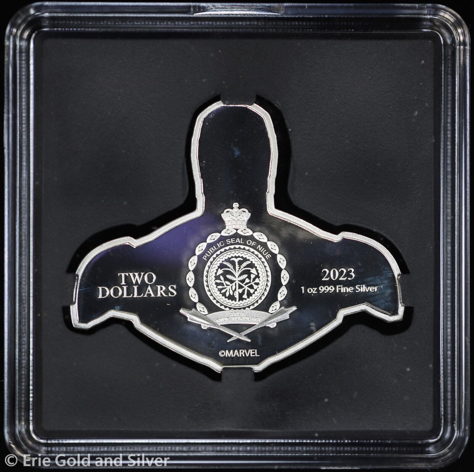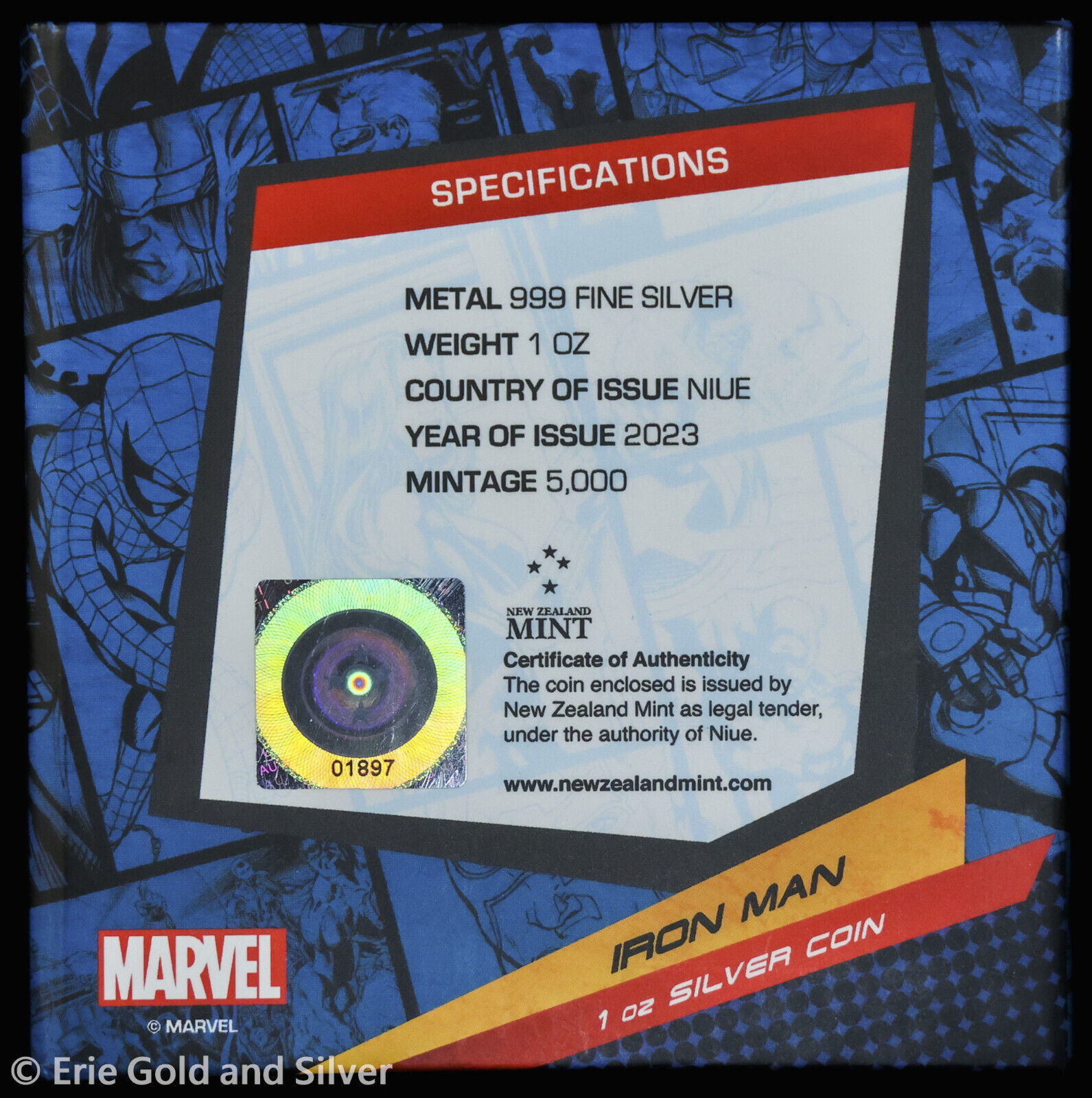 For sale is a 2023 $2 Niue Marvel: Iron Man 1 oz Silver Colorized Coin in OGP. View pictures for details and condition. The item pictured is the exact item you will receive.