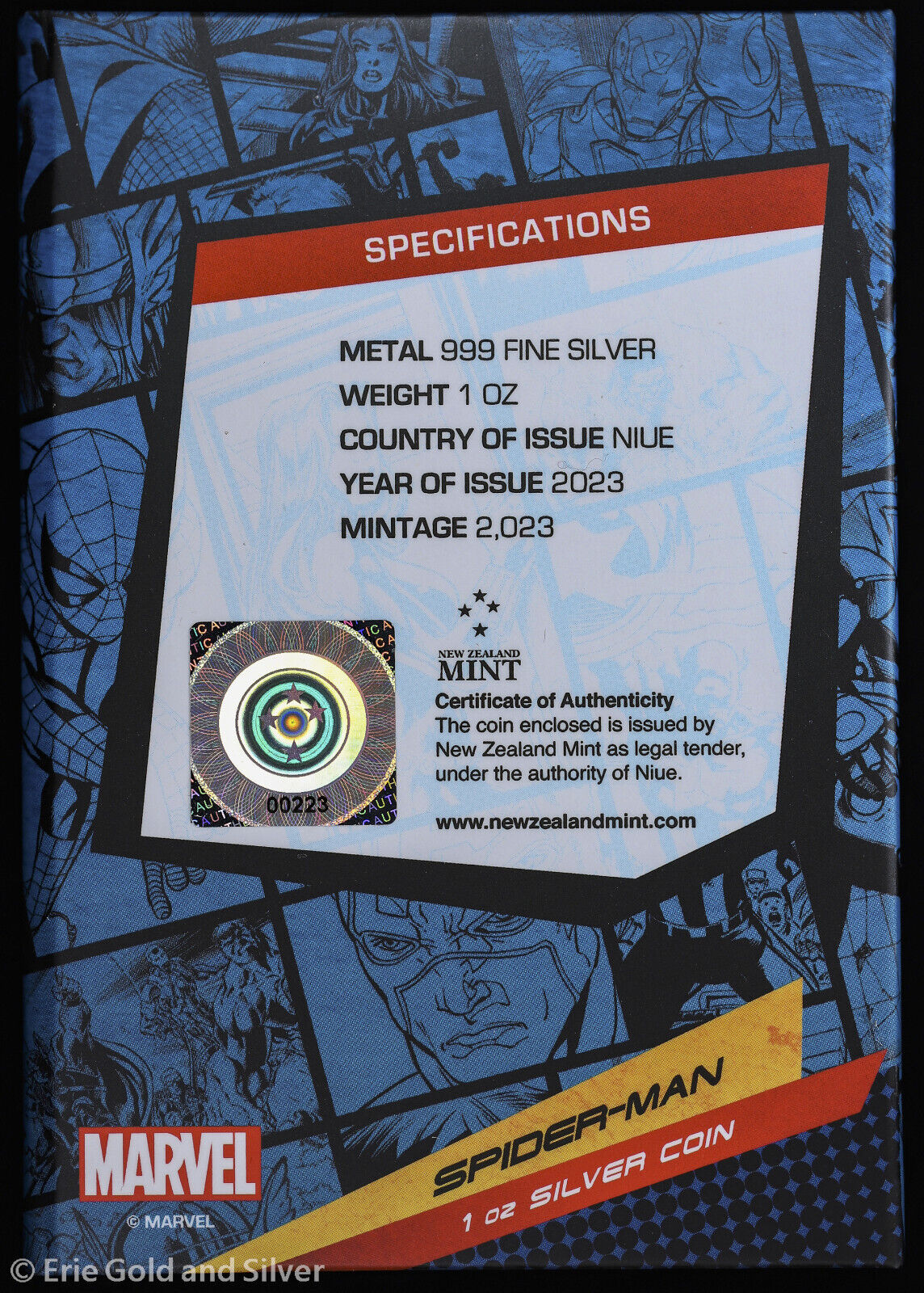 2023 $2 Niue Marvel - Spider-Man 1 oz Silver Proof Colorized Coin in OGP