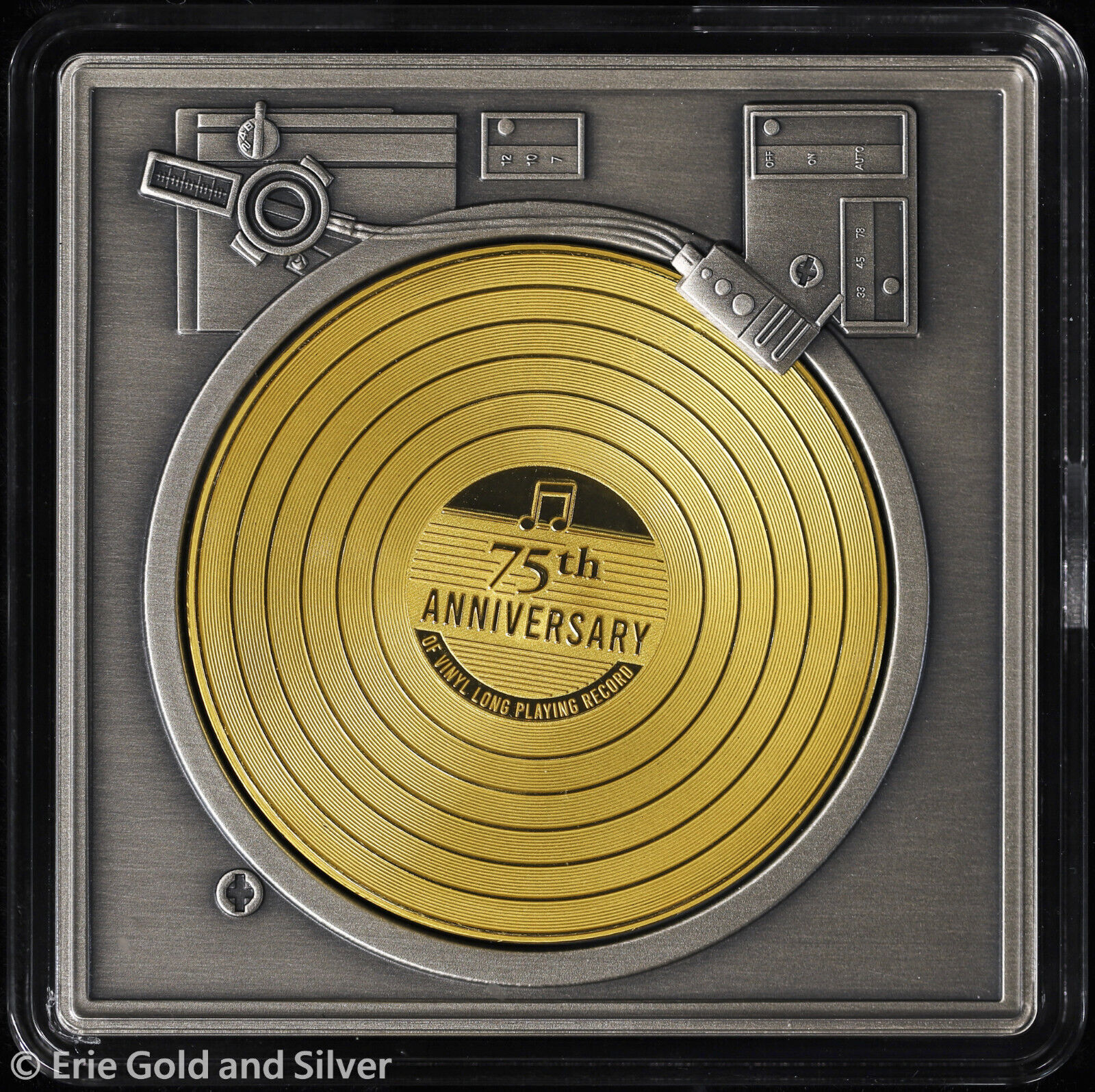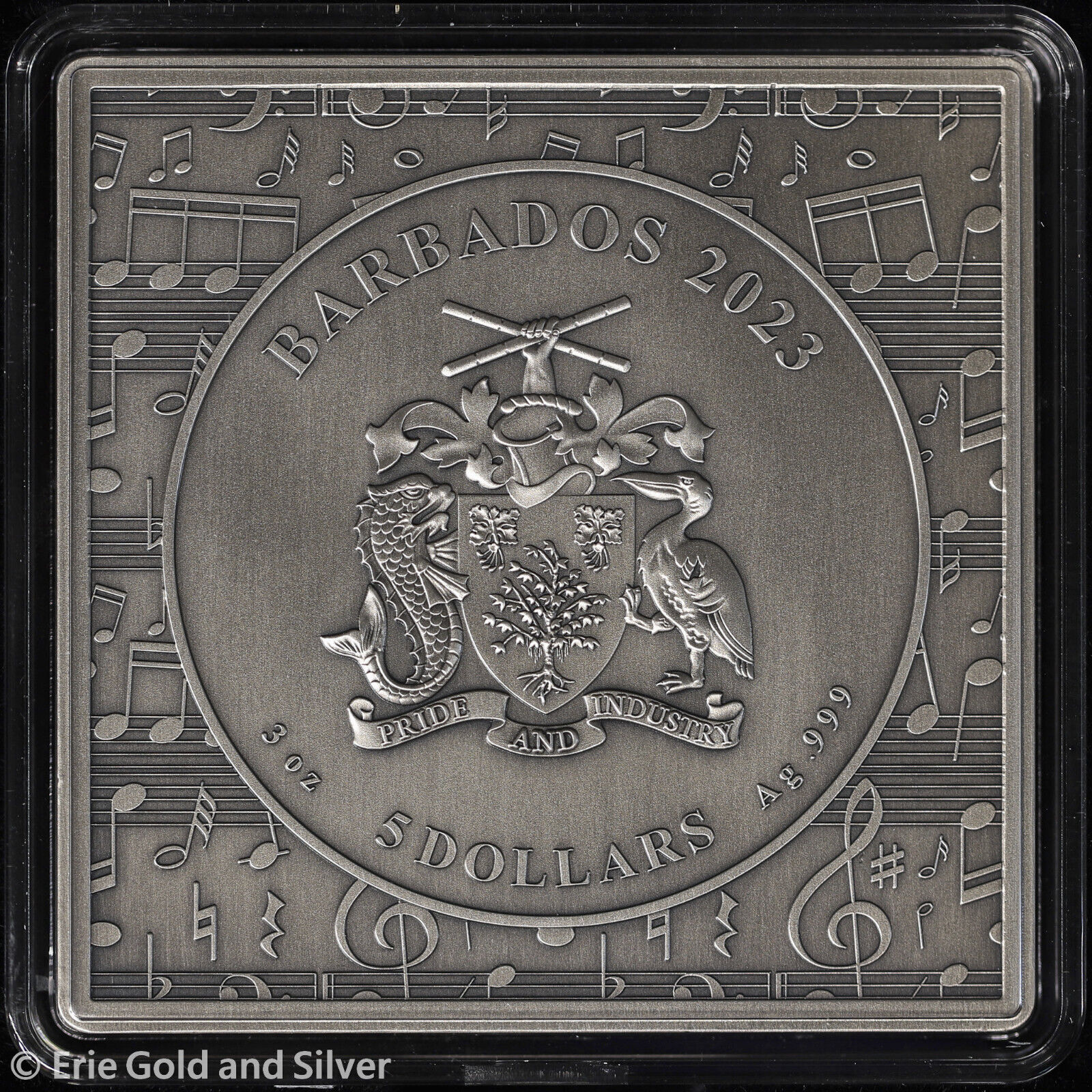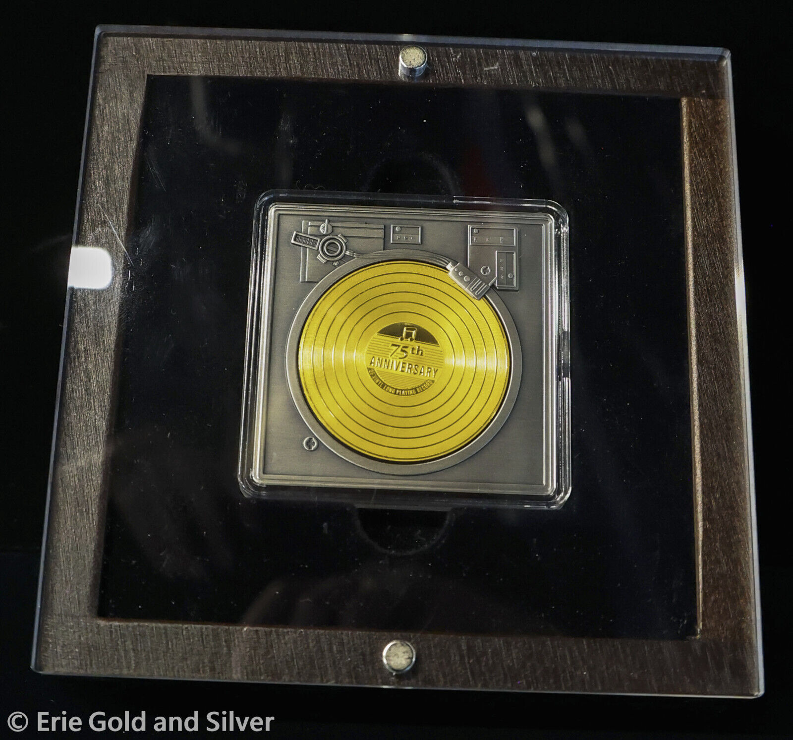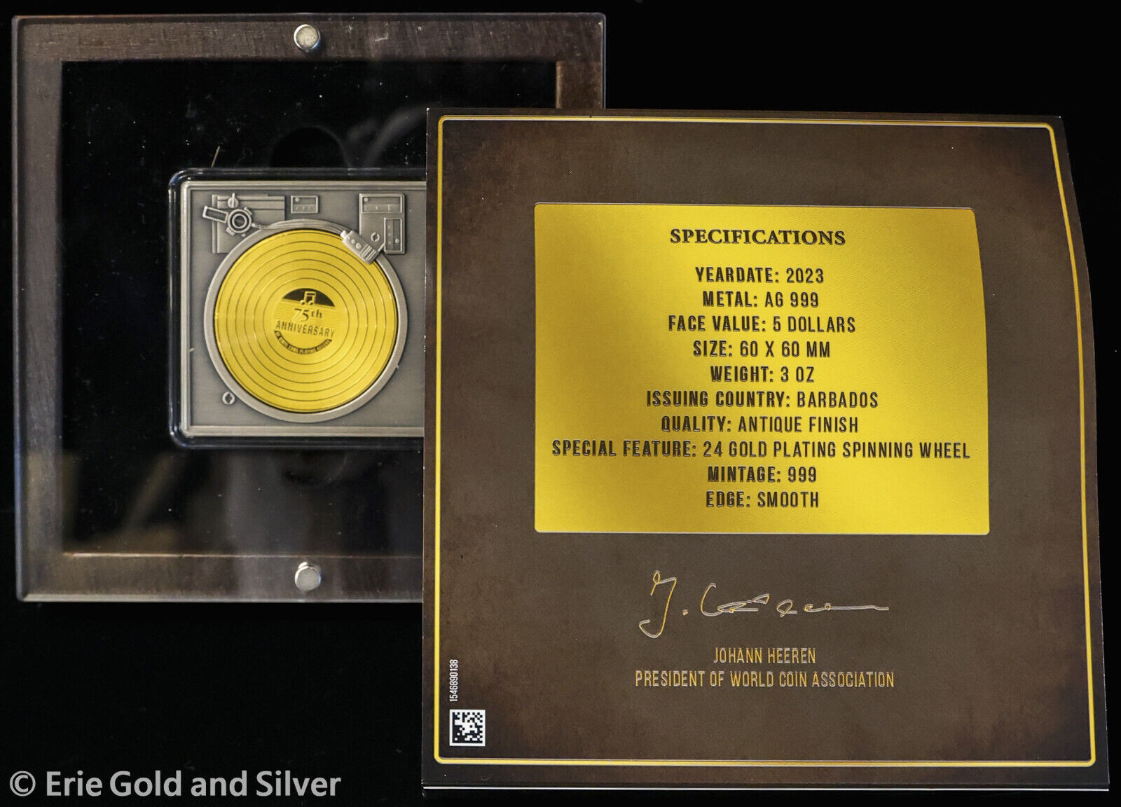2023 $5 Barbados 75th Anniv Spinning Wheel Vinyl Record 3 oz Silver Coin in OGP