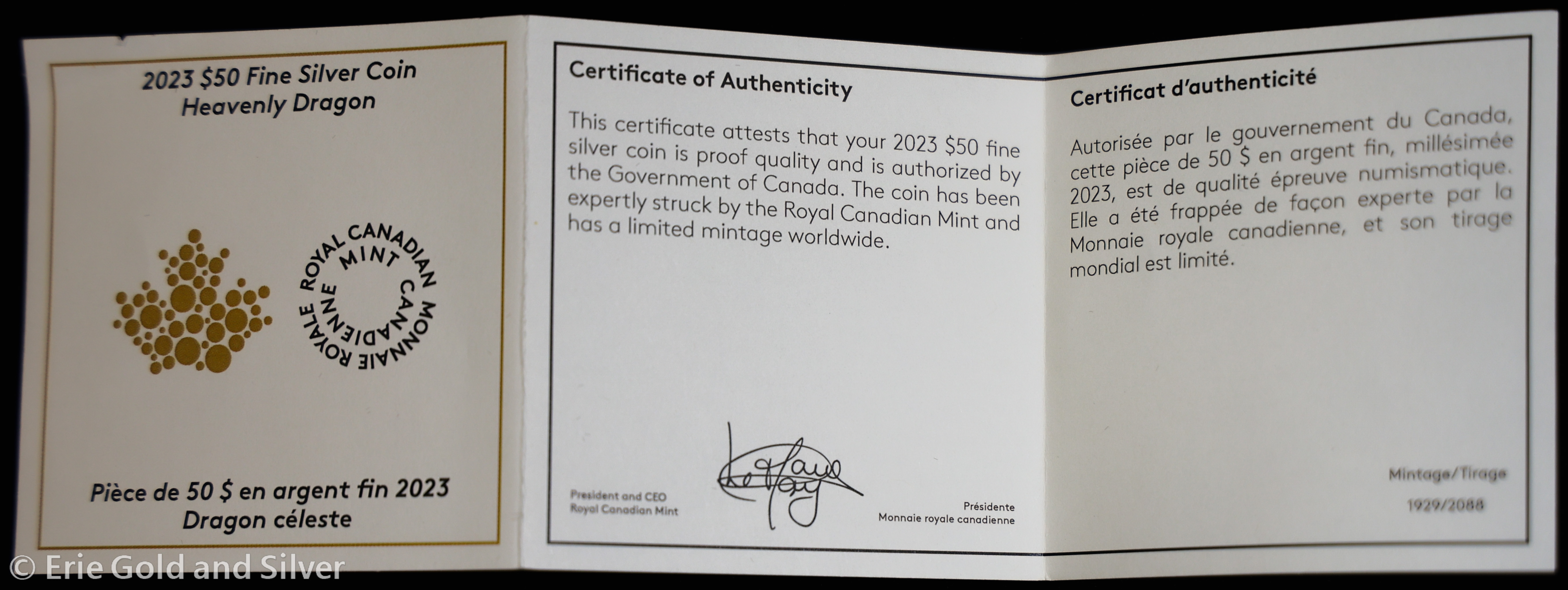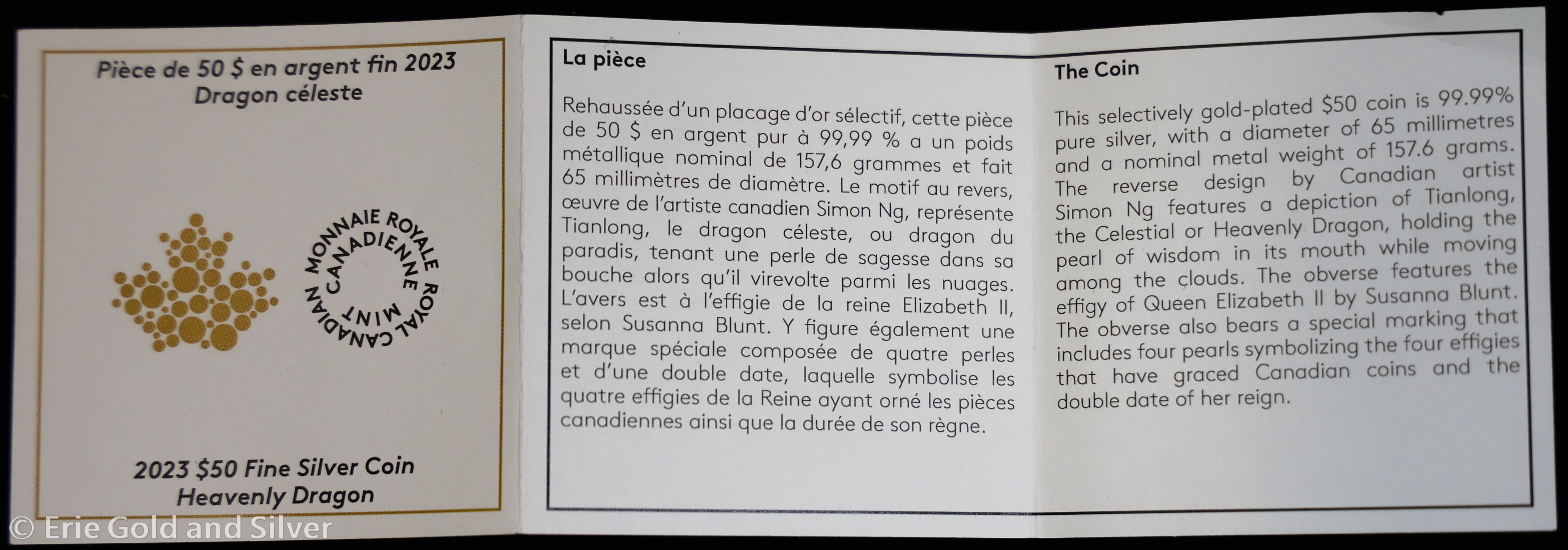 2023 $50 Canada Heavenly Dragon 5 oz Silver Gold Gilded Coin in OGP