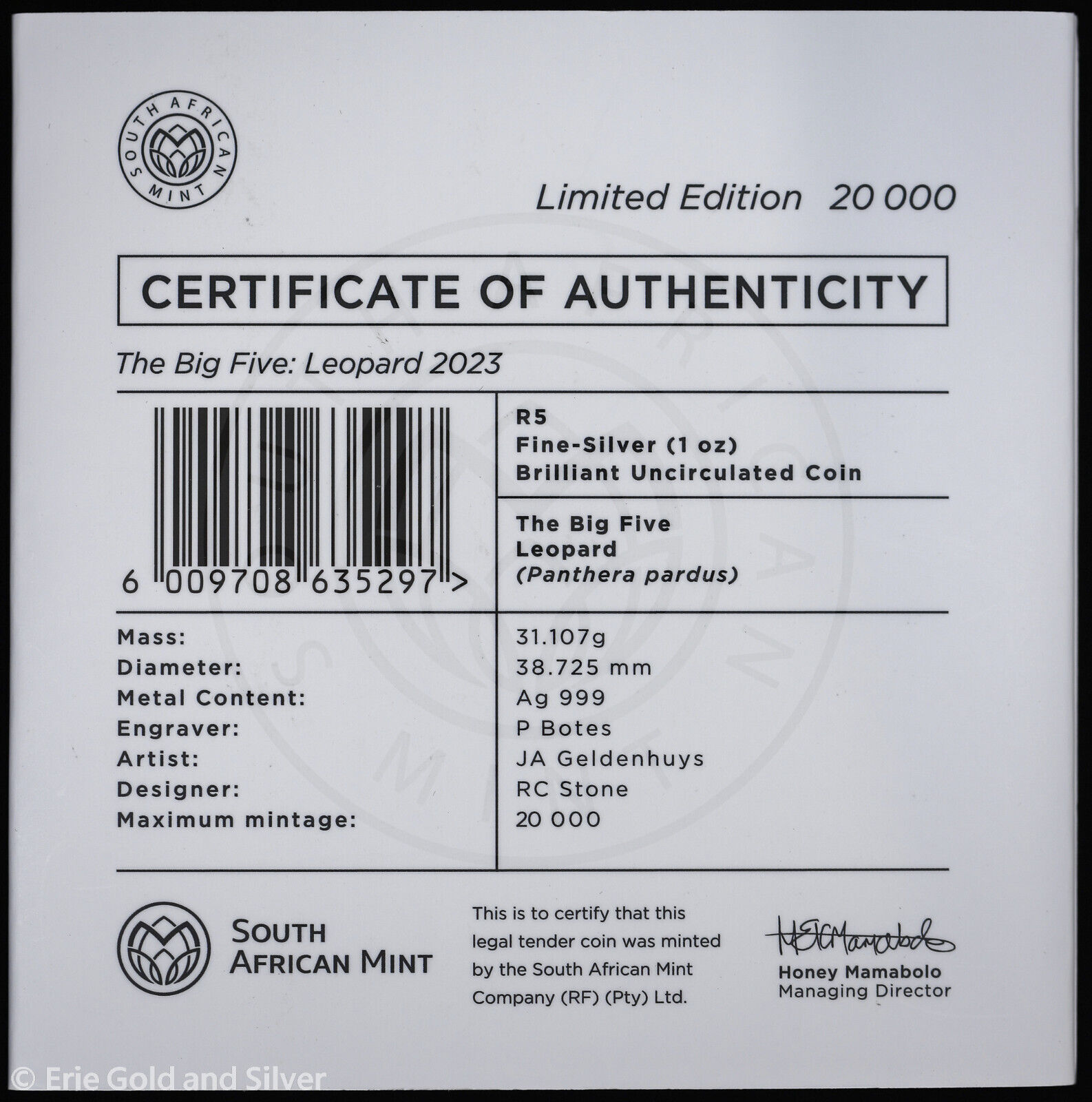 2023 5R South Africa The Big 5 Leopard 1 oz Silver Coin in Package