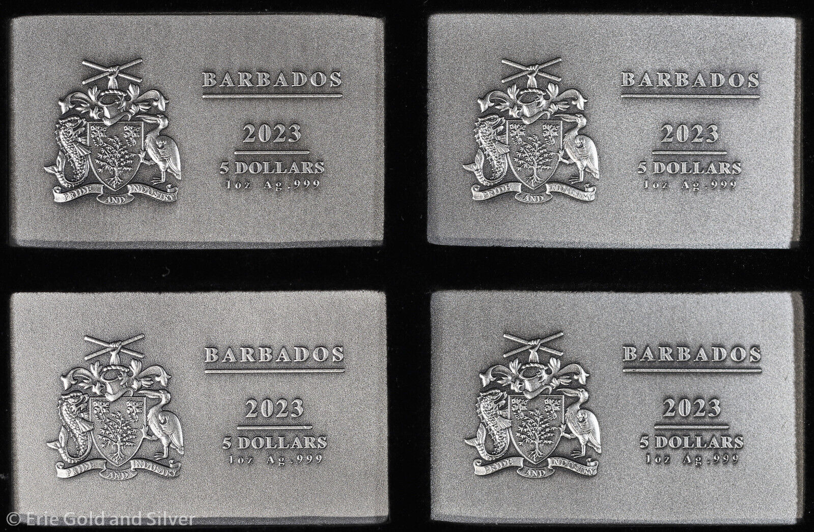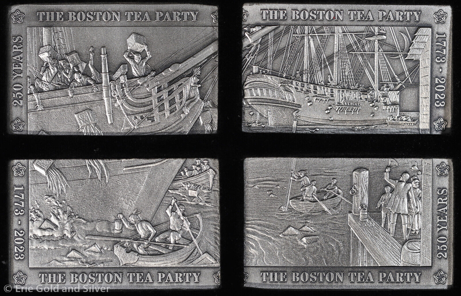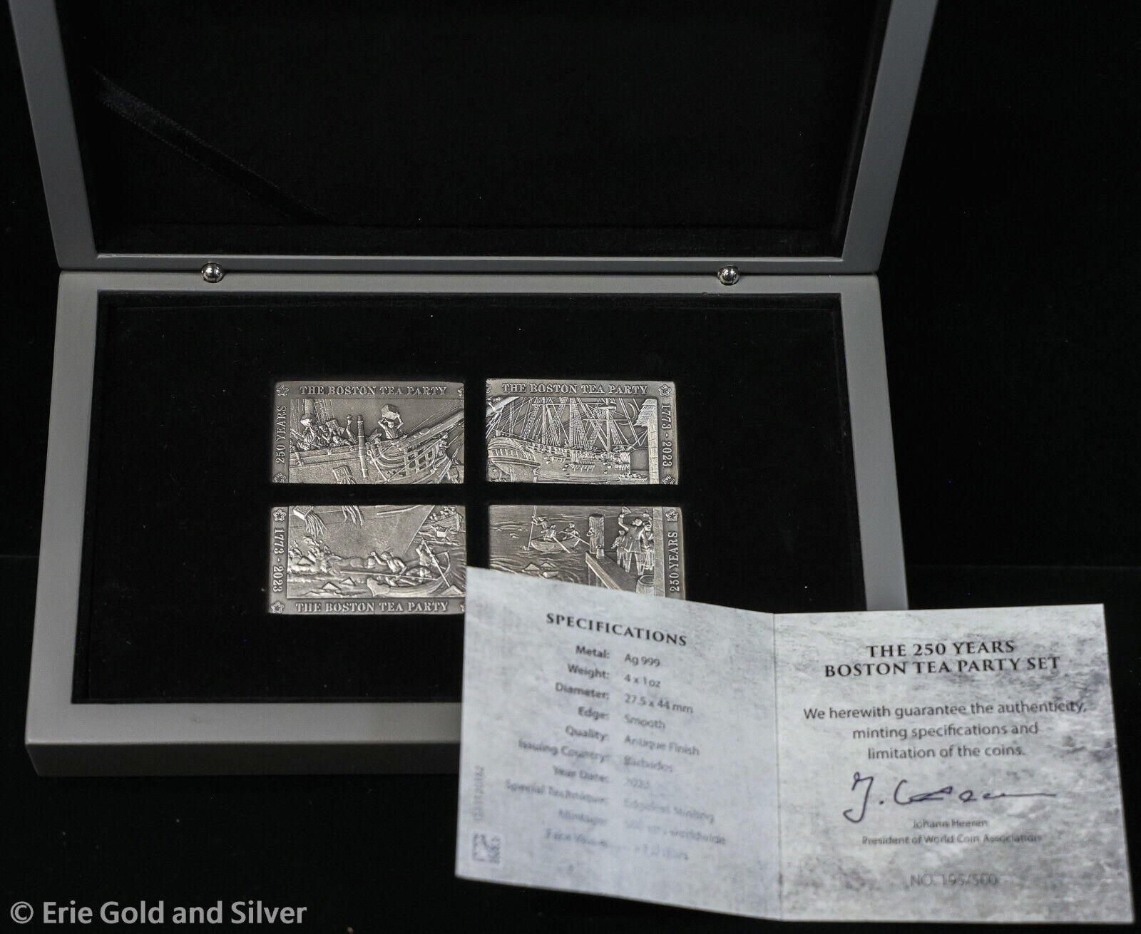 2023 Barbados Boston Tea Party 250th Ann 4x 1 oz Antiqued Silver Coin Set in OGP