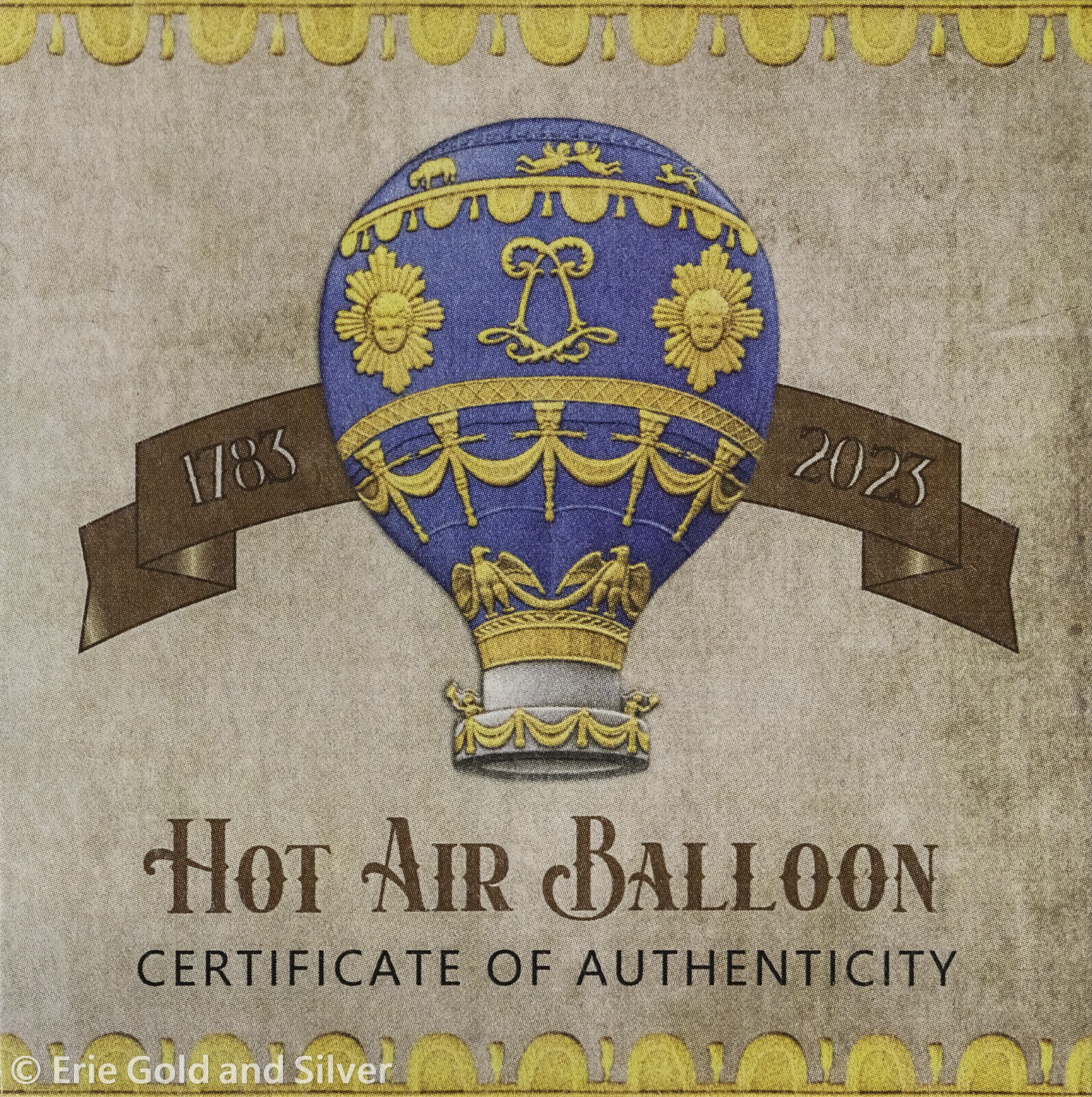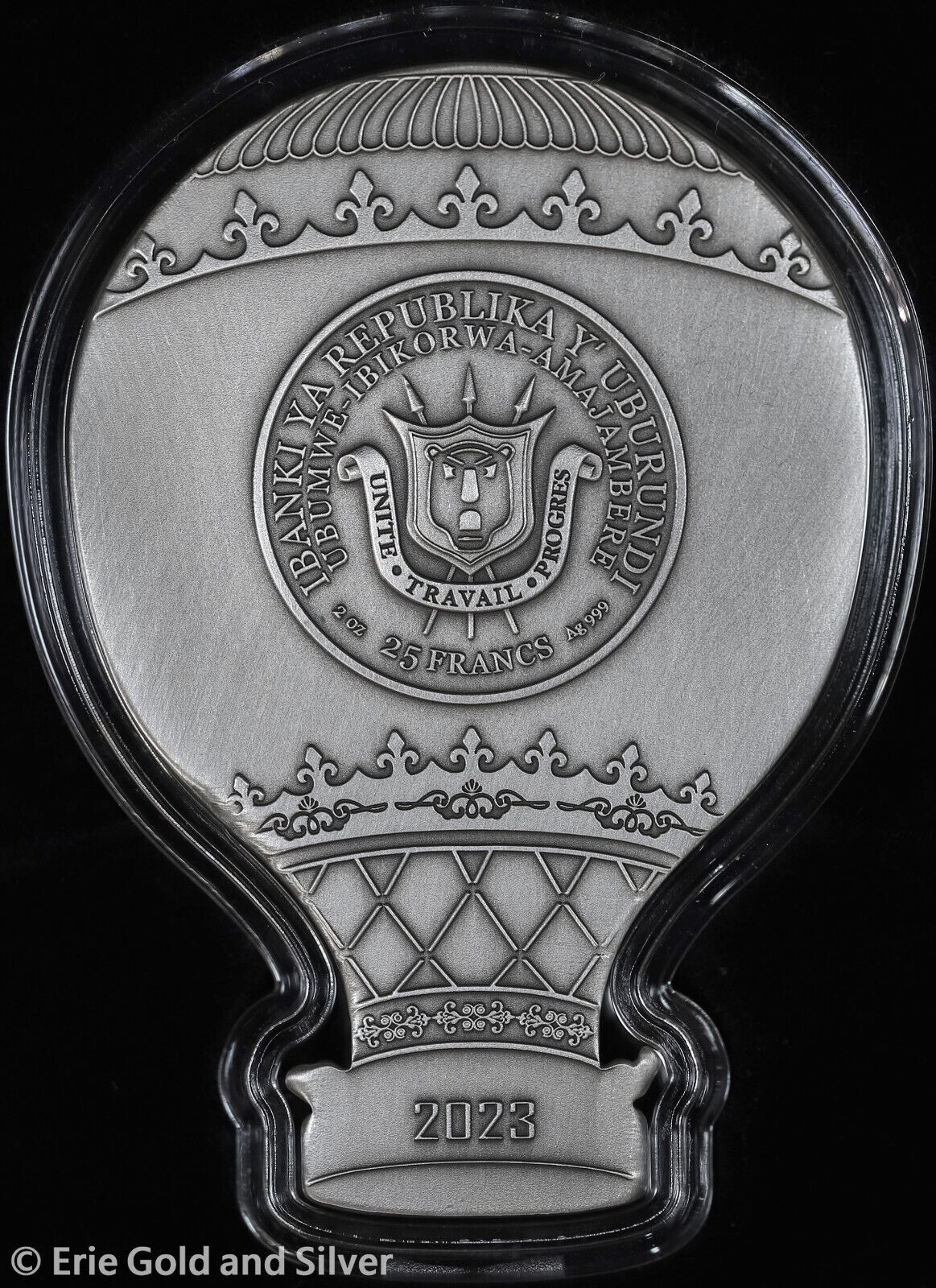 2023 Burundi Hot Air Balloon Shaped 2 oz Silver Antiqued Colorized Coin in OGP