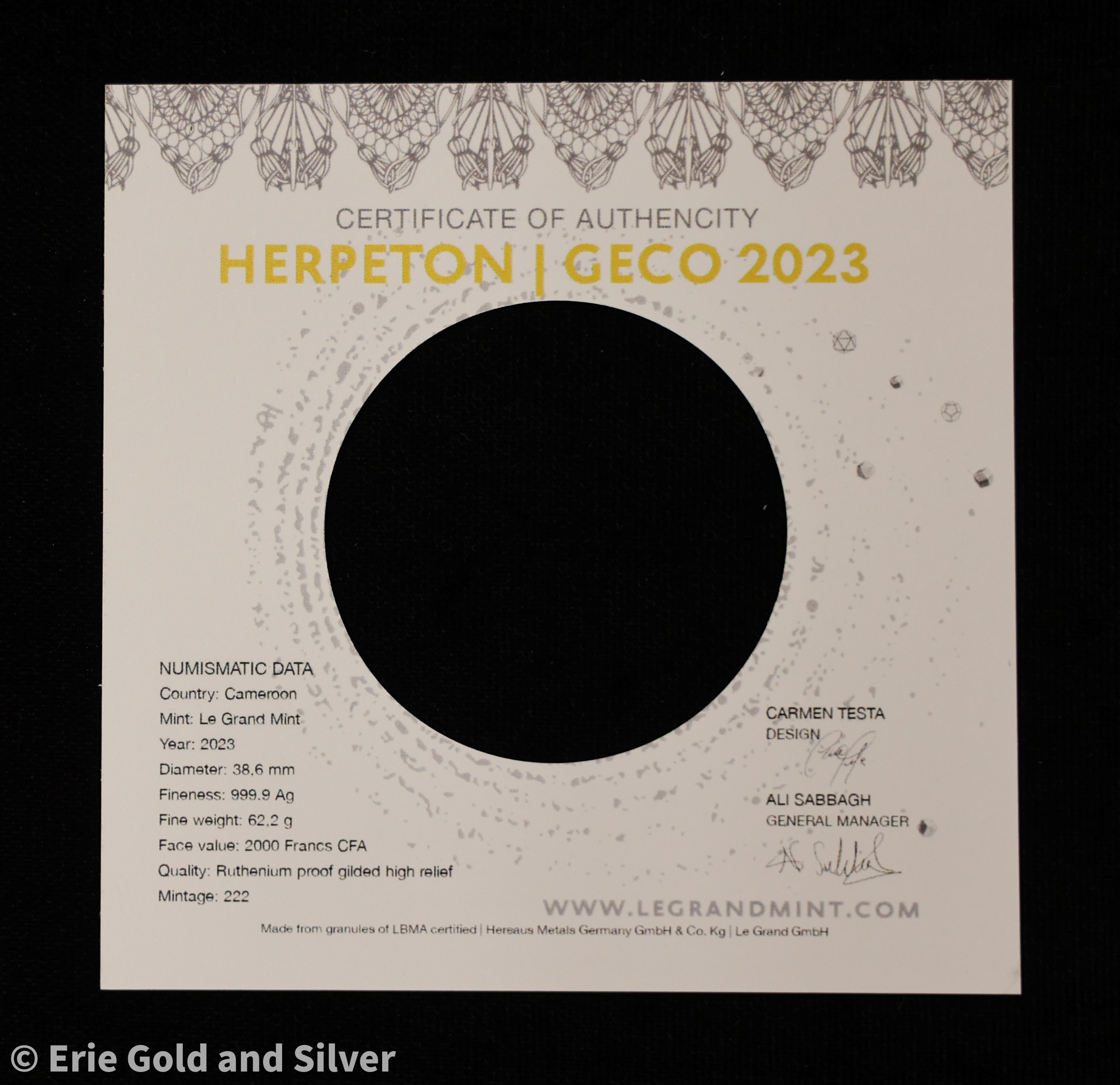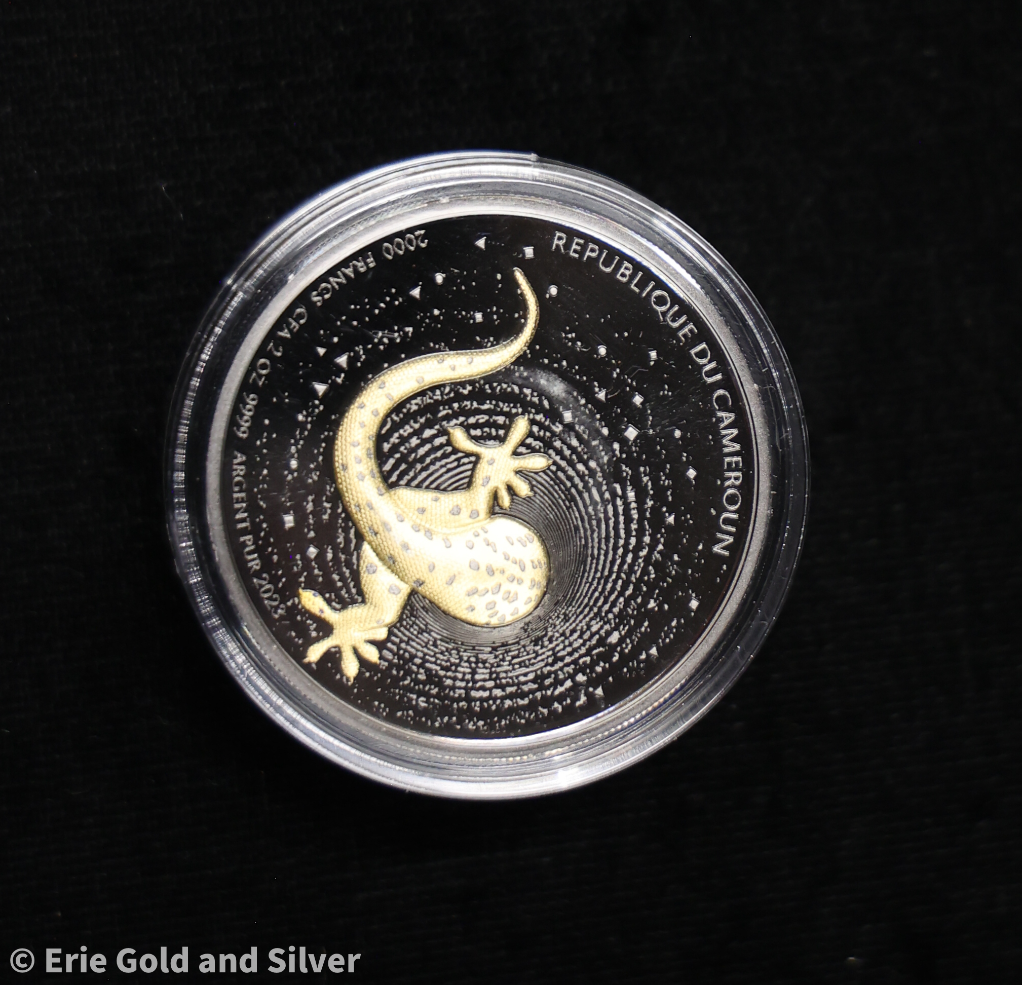 2023 Cameroon Geco 2 oz .9999 Silver High Relief Ruthenium Proof Coin