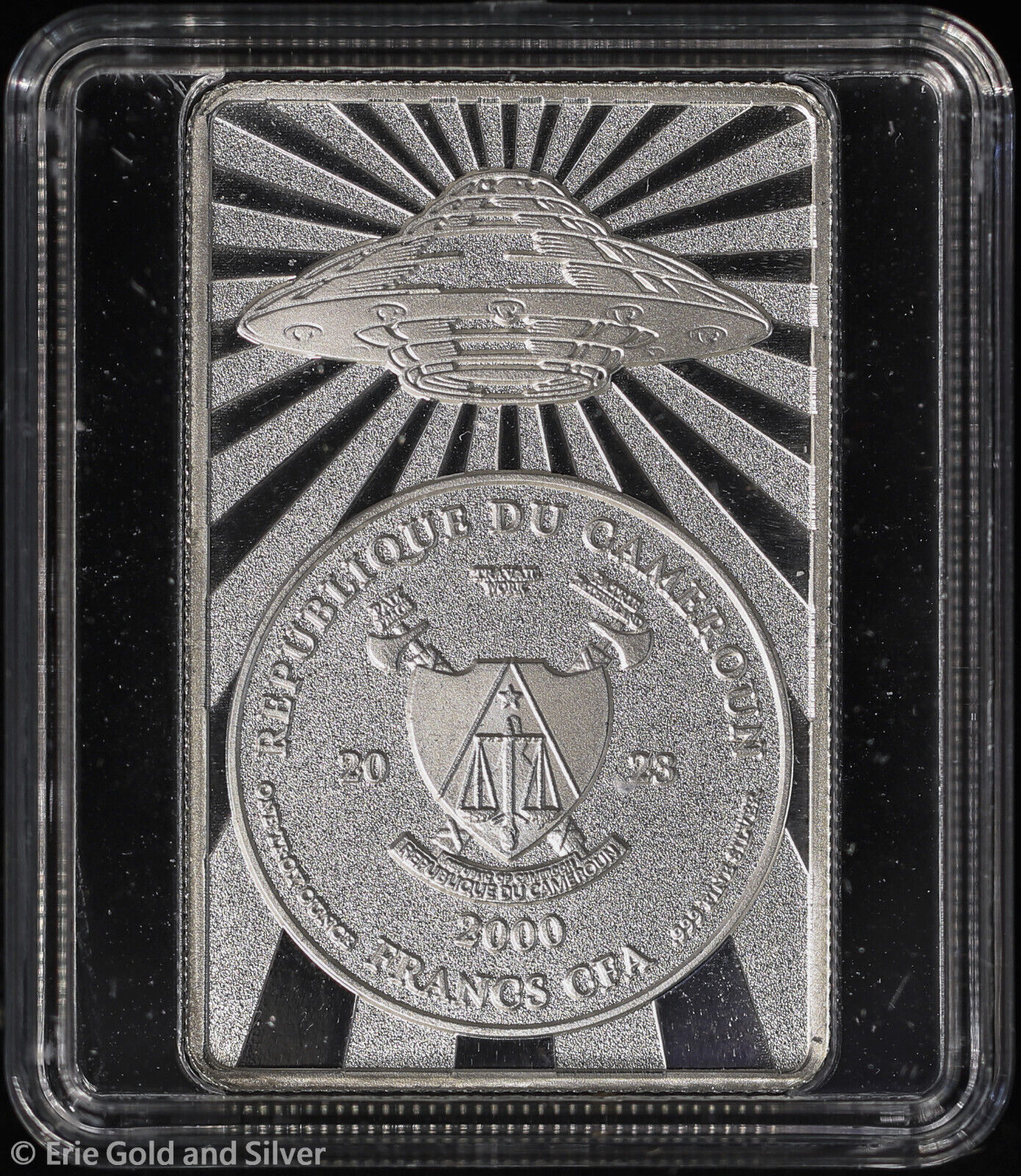 For sale is a 2023 Cameroon I Want to Believe UFO 1 oz Silver Bar with Box & COA. View pictures for details and condition. There are multiple available, so the item you receive may not be the exact item pictured. However, it will be similar quality. Feel free to contact us with any questions.