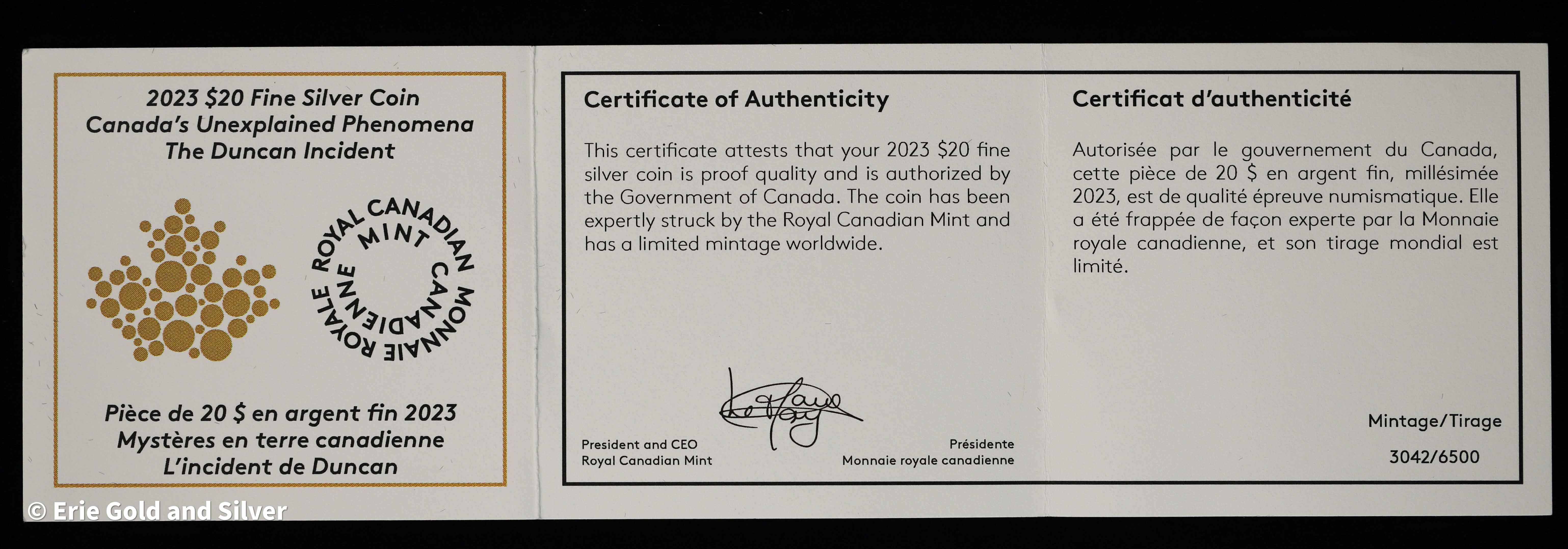 2023 Canad's Unexplained Phenomena 1 oz Silver Bar in OGP w/ Light