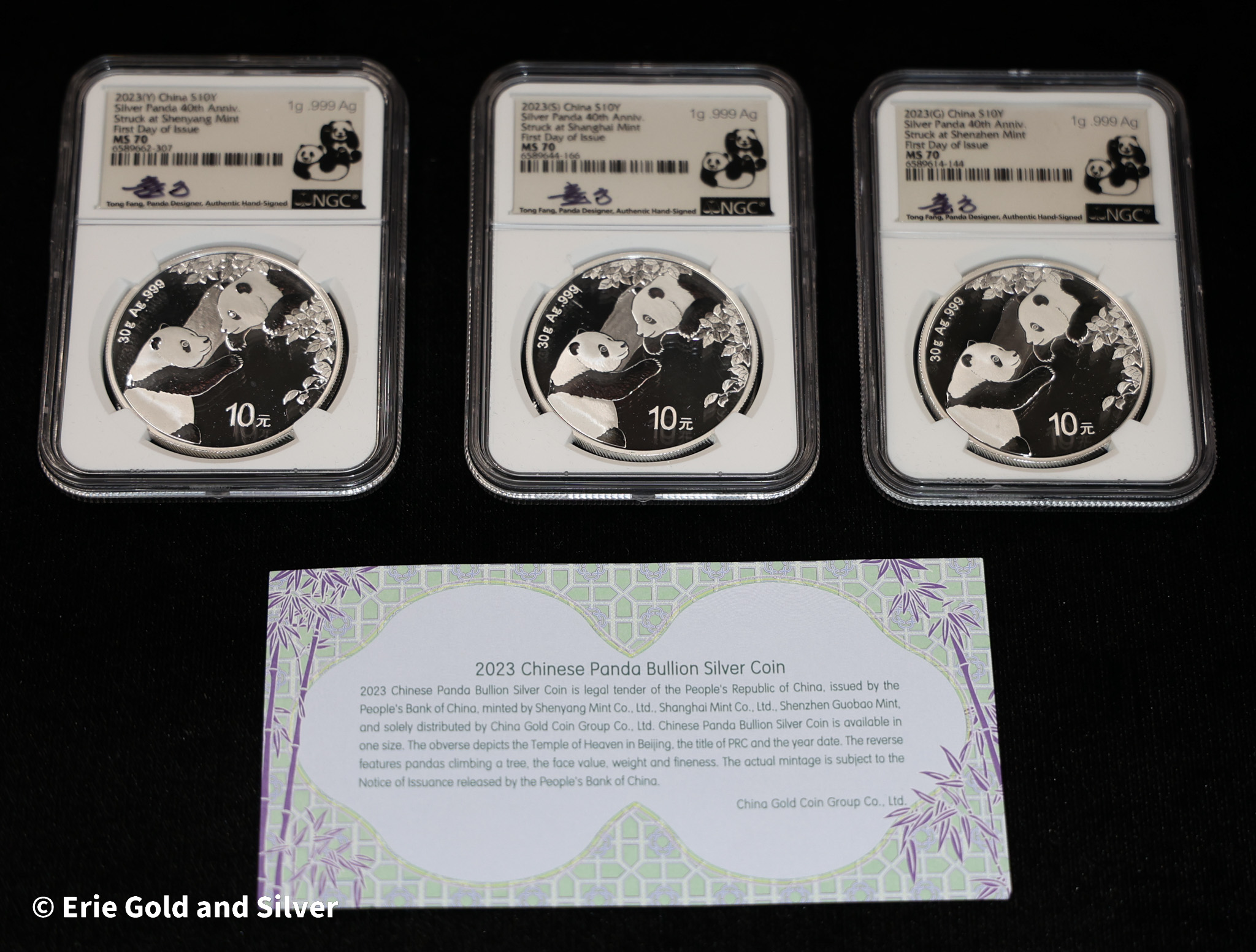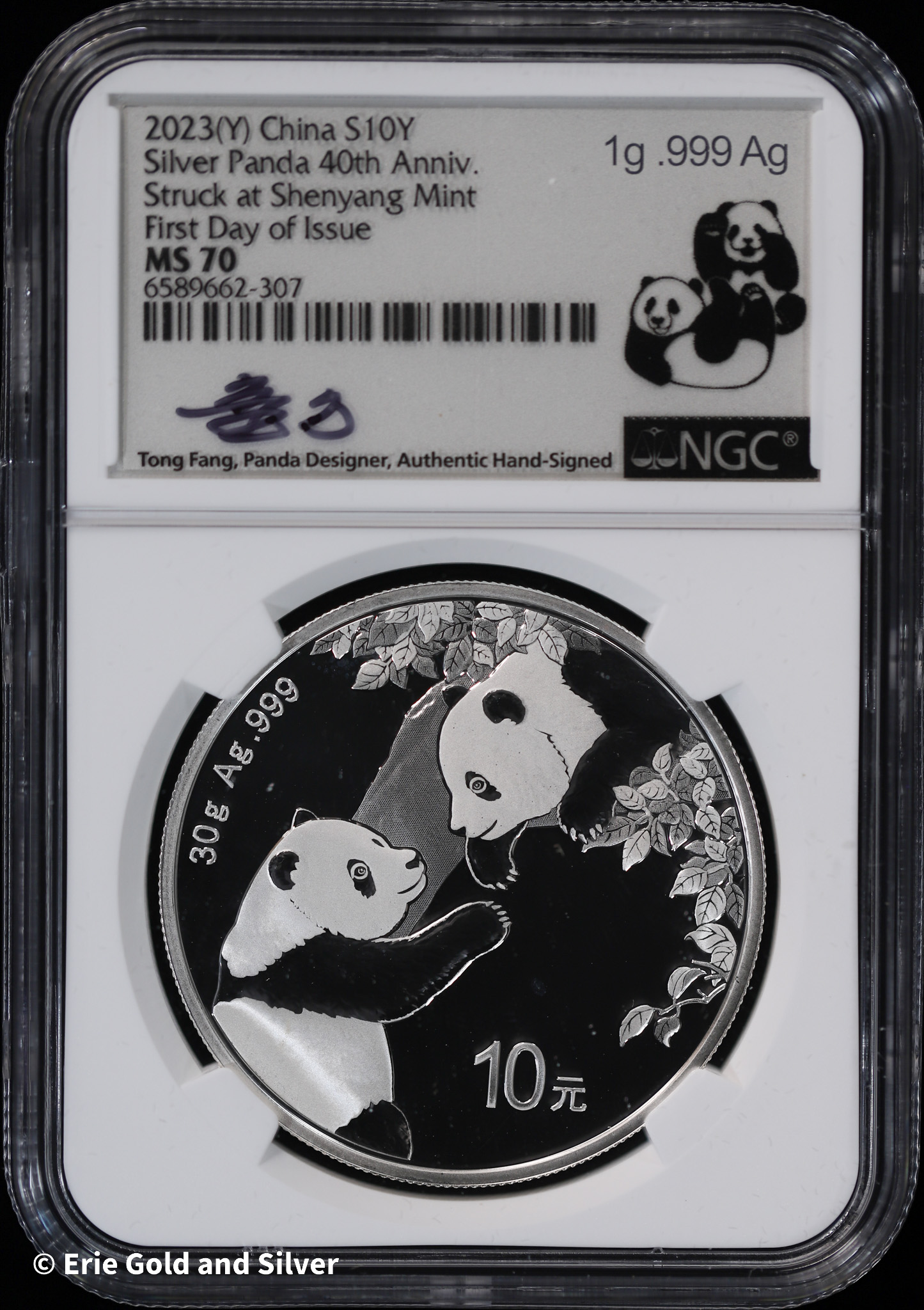 2023 China Silver Panda 3-Coin Set NGC MS 70 | Tong Fang Signed Slabs, First Day of Issue