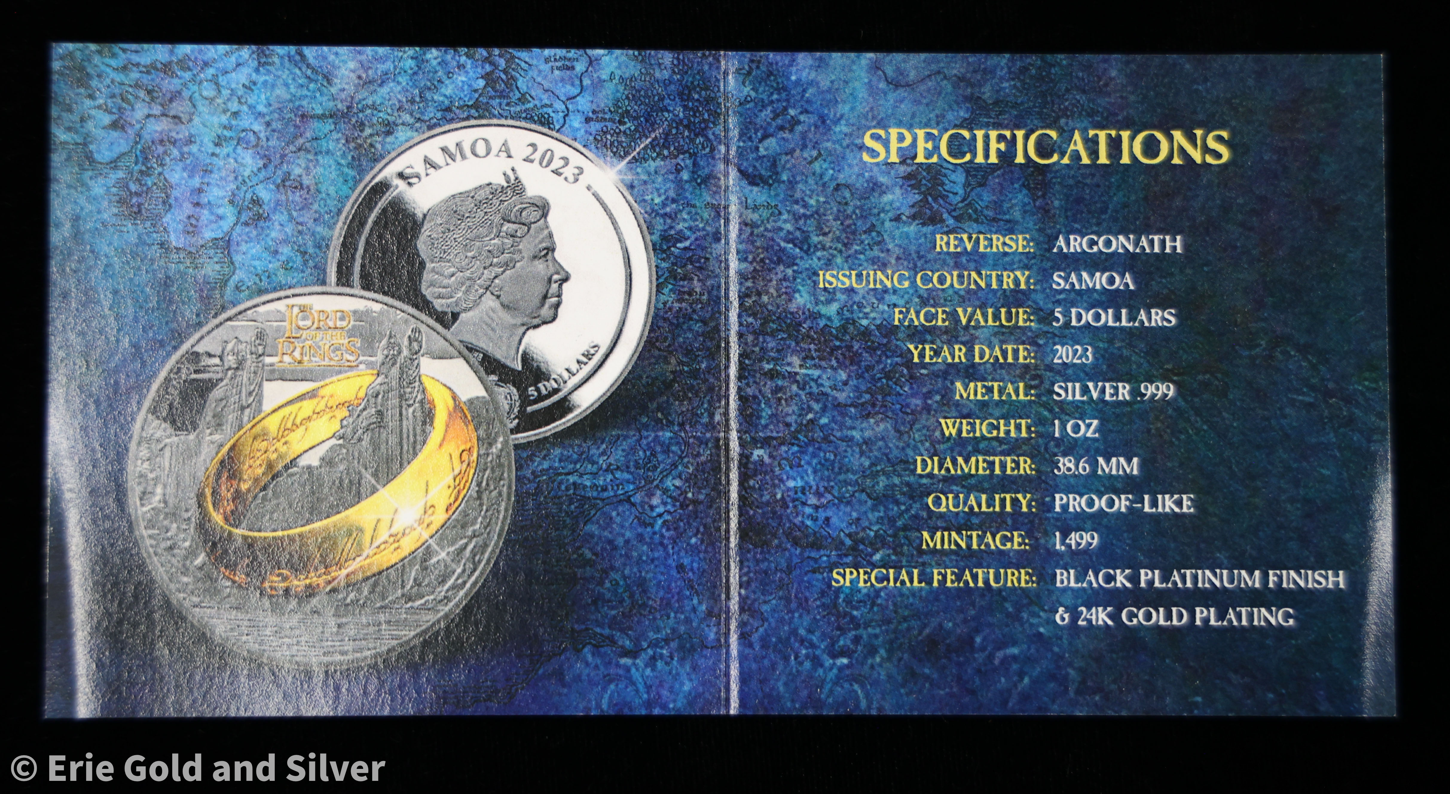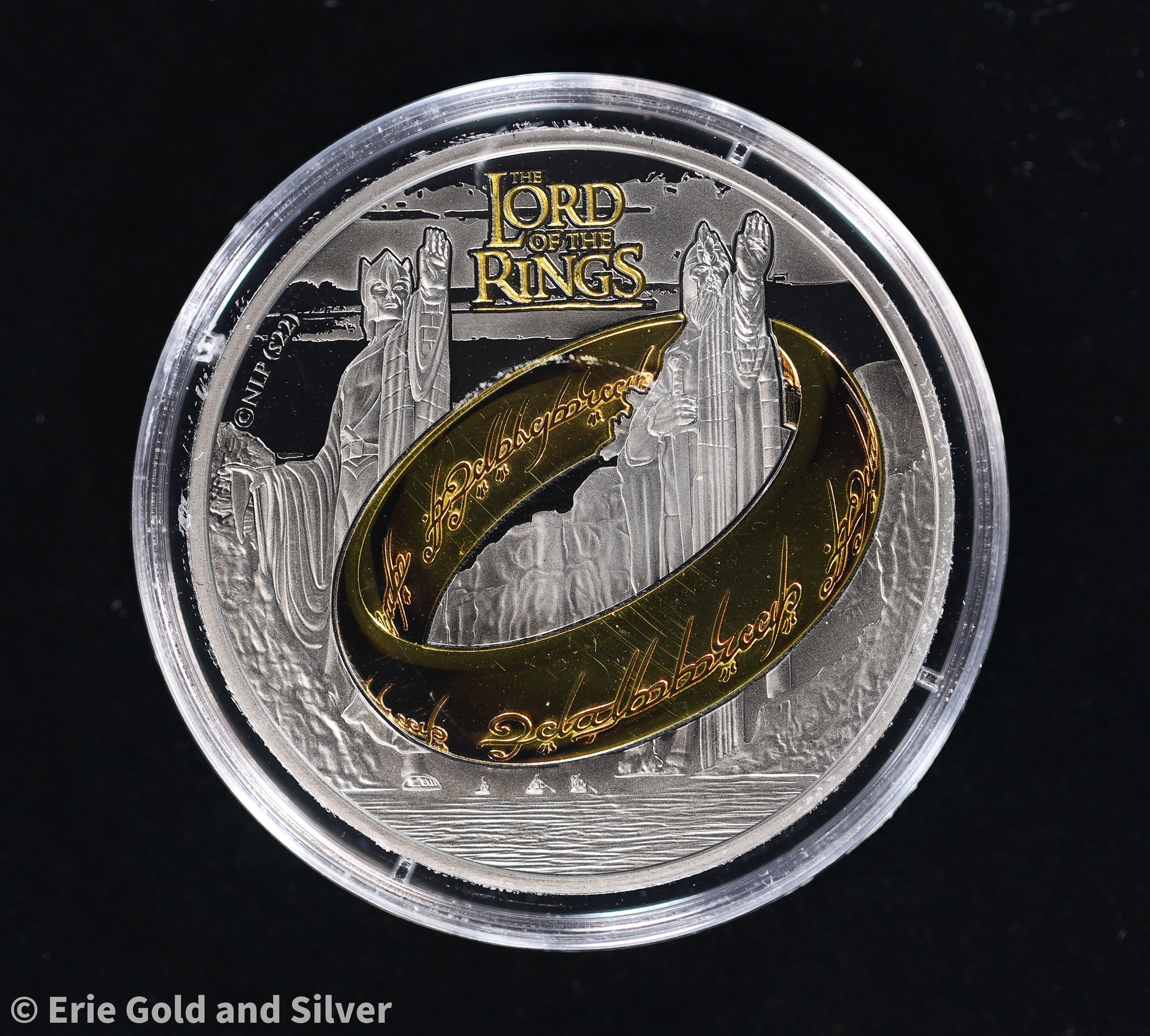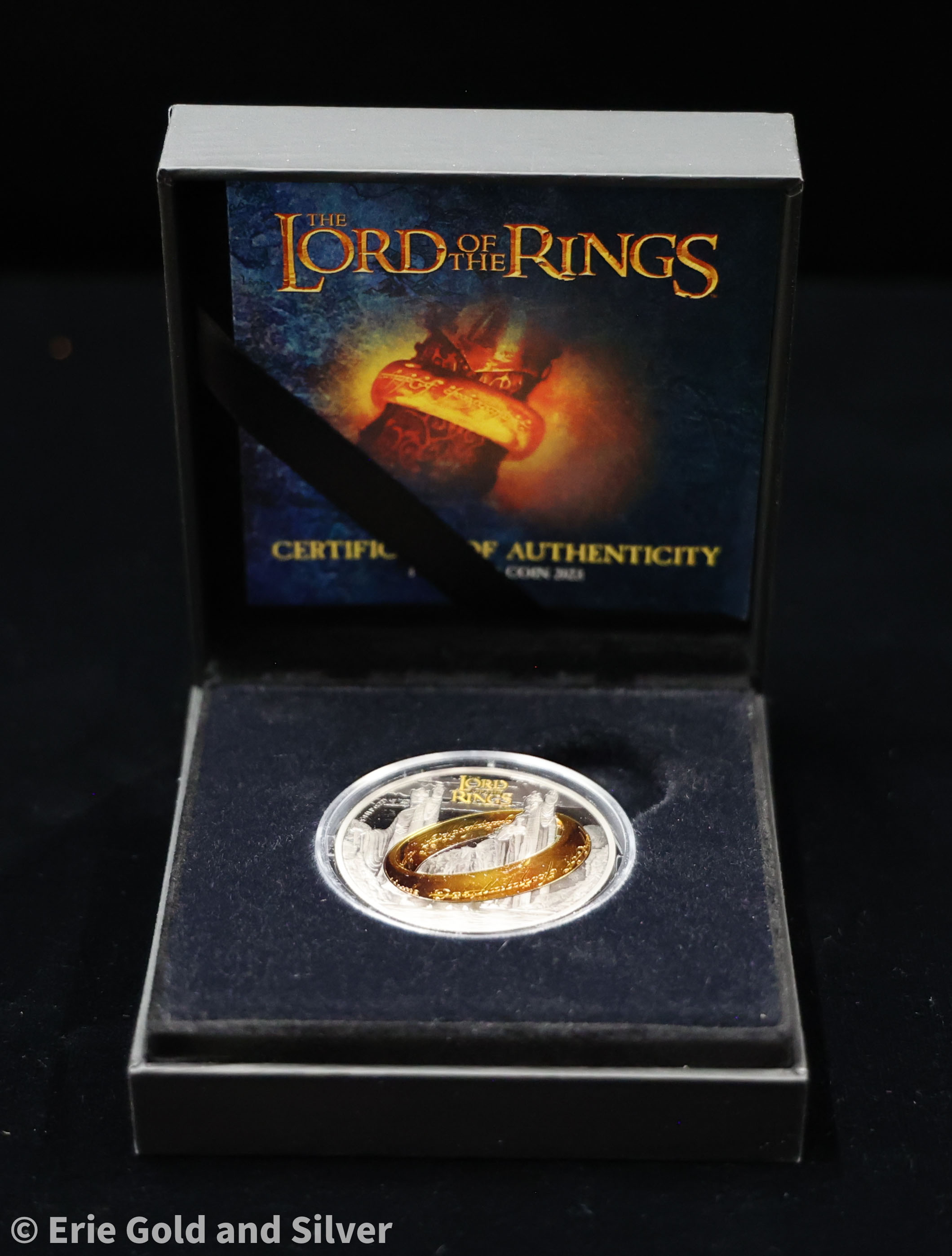 For sale is a Lord of the Rings 1 oz Silver Coin w/ Black Platinum & 24k Gold Plating