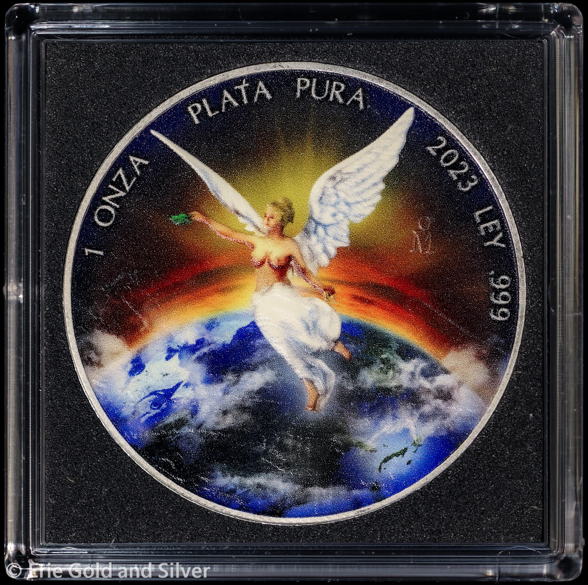 For sale is a 2023 Mexico Colorized 1 oz Silver Libertad - Above the Earth and Sun.