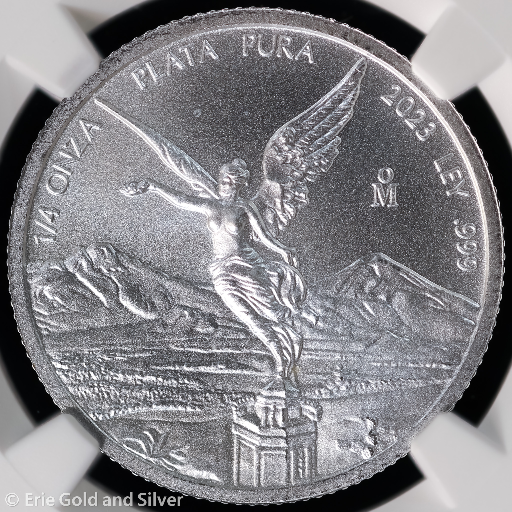 For sale is a 2023-Mo Mexico 1/4 oz Silver Libertad. Certified / graded by NGC at MS 70.