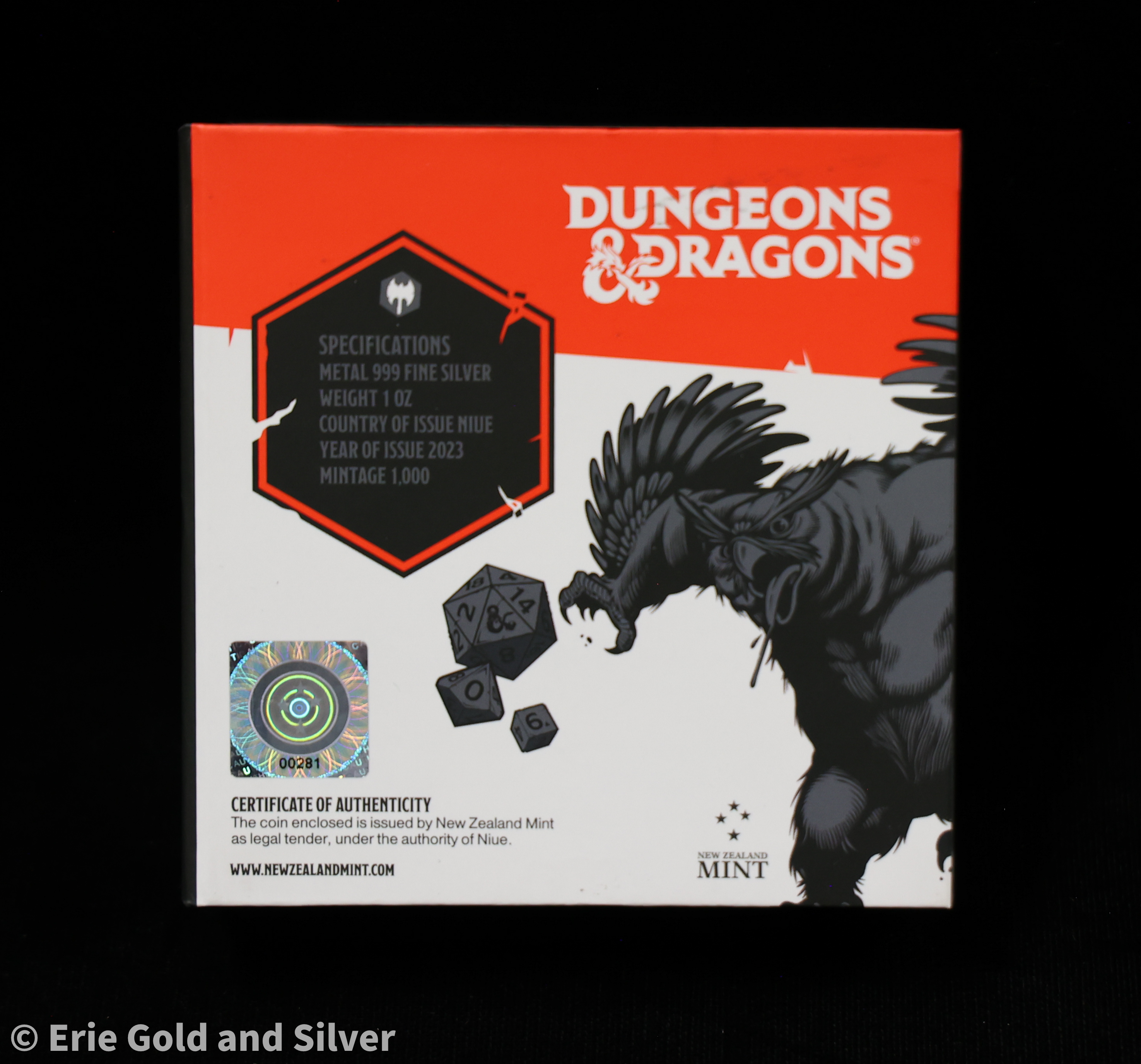 Embark on an epic quest with the 2023 Niue $2 Dungeons & Dragons: Adventure Awaits coin, a captivating tribute to the legendary role-playing game. Struck in 1 oz of .999 fine silver by the New Zealand Mint, this officially licensed coin features a vivid colorized design of a valiant warrior confronting a formidable red dragon, encapsulating the essence of D&D's adventurous spirit.