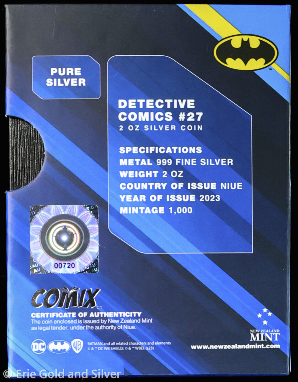 2023 Niue Comix DC Detective Comics #27 Batman Colorized 2 oz Silver Coin in OGP