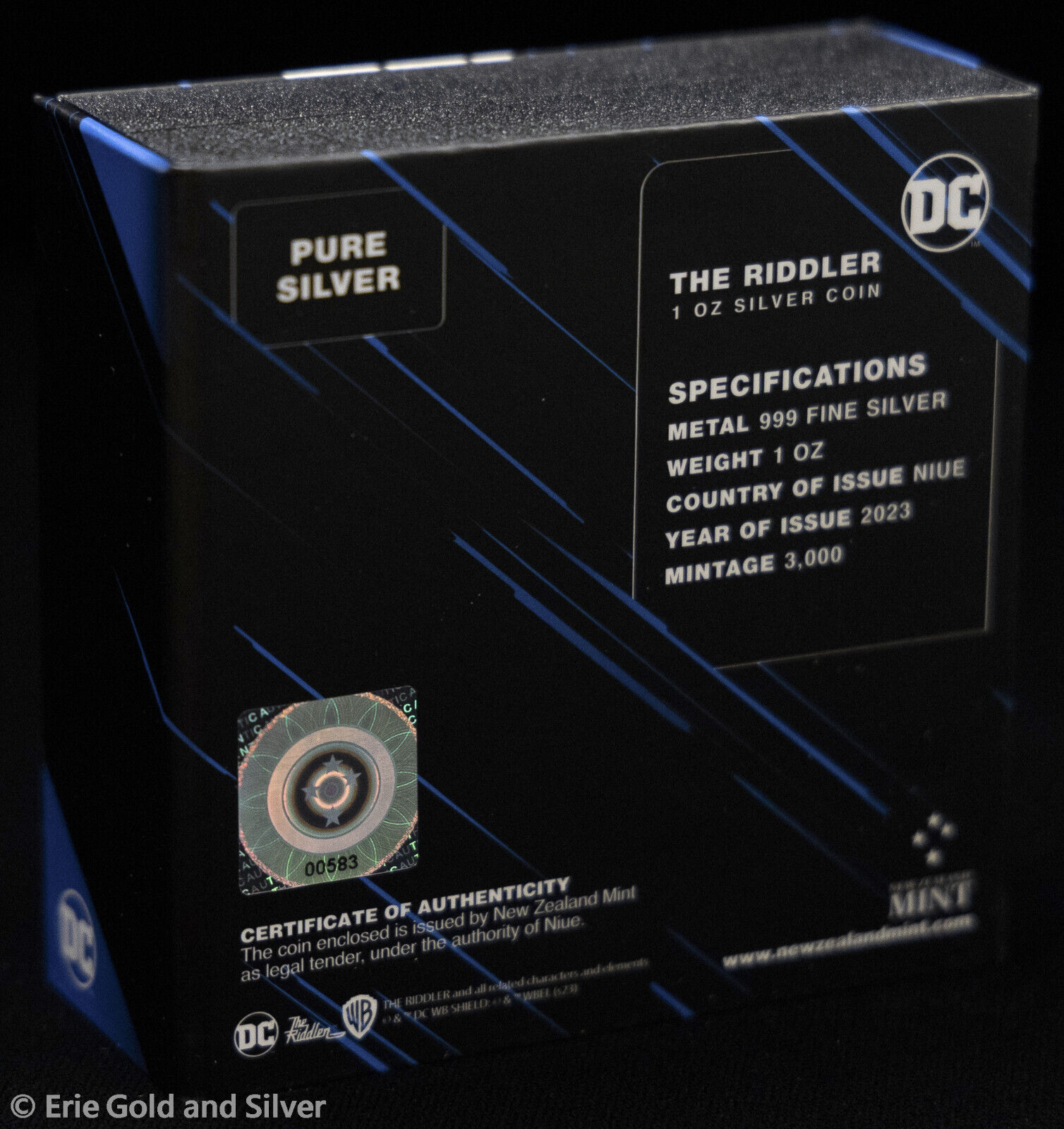 For sale is a 2023 Niue DC The Riddler 1 oz silver OGP BOX ONLY. View pictures for details and condition. There are multiple available, so the item you receive may not be the exact item pictured. However, it will be similar quality. Feel free to contact us with any questions.