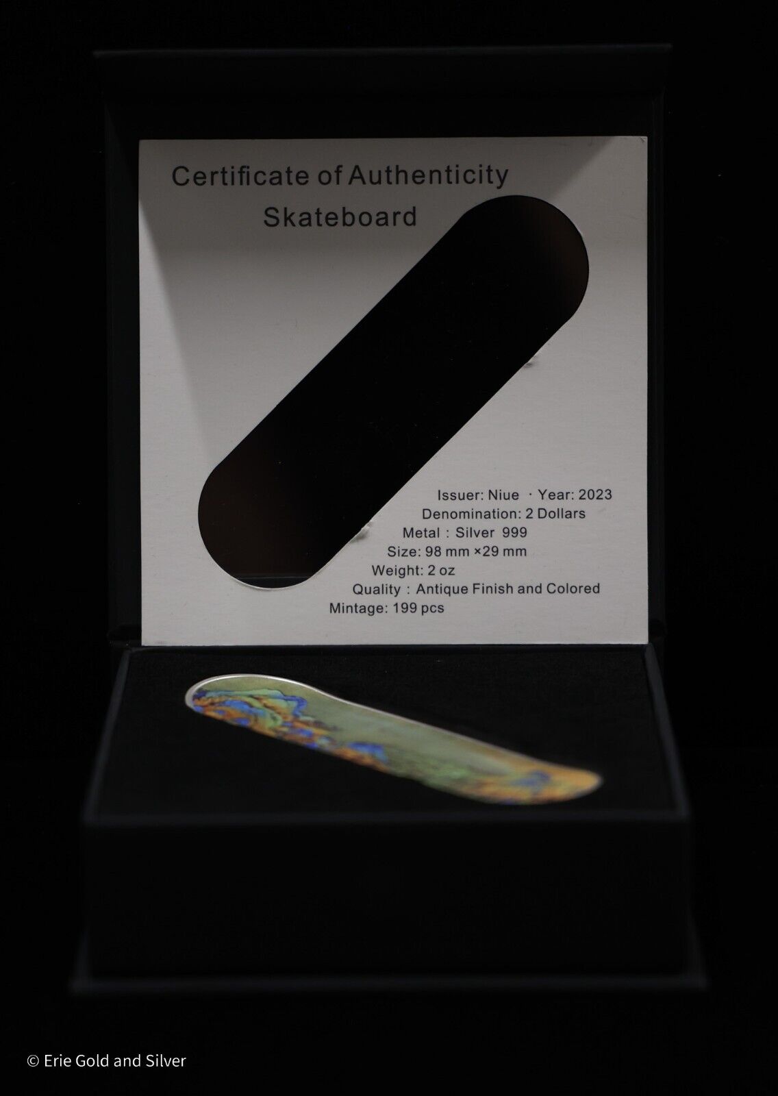 For sale is a 2023 Niue Skateboard w/ Painting 3D 2 oz Silver Coin. View pictures for details and condition. There are multiple available, so the coin you receive may not be the exact coin pictured, however it will be similar quality. Feel free to contact us with any questions.