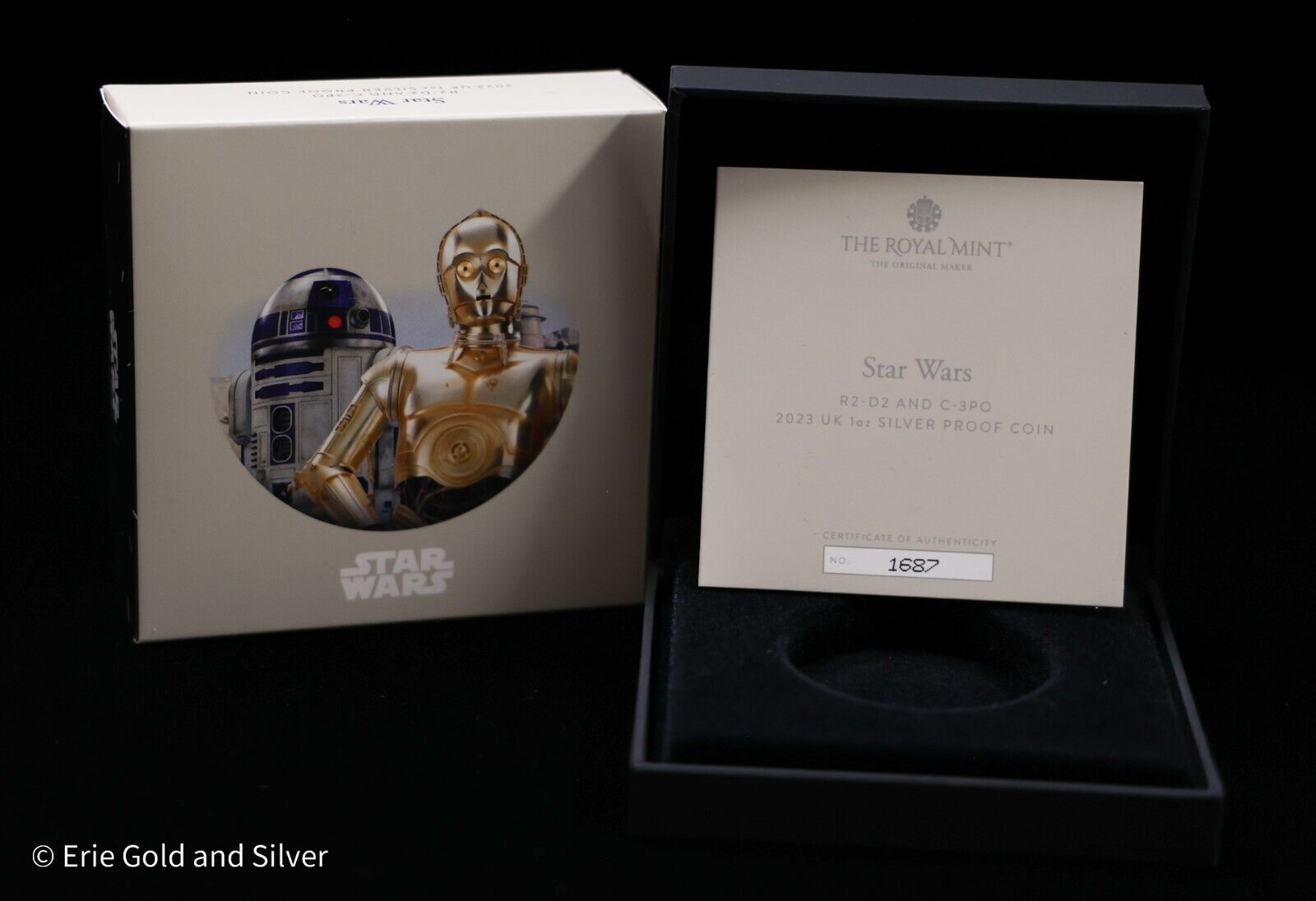 For sale is a 2023 Niue Star Wars R2-D2 & C-3PO 1 oz Silver Coin OGP BOX & COA ONLY. View pictures for details and condition. There are multiple available, so the item you receive may not be the exact item pictured. However, it will be similar quality. Feel free to contact us with any questions.