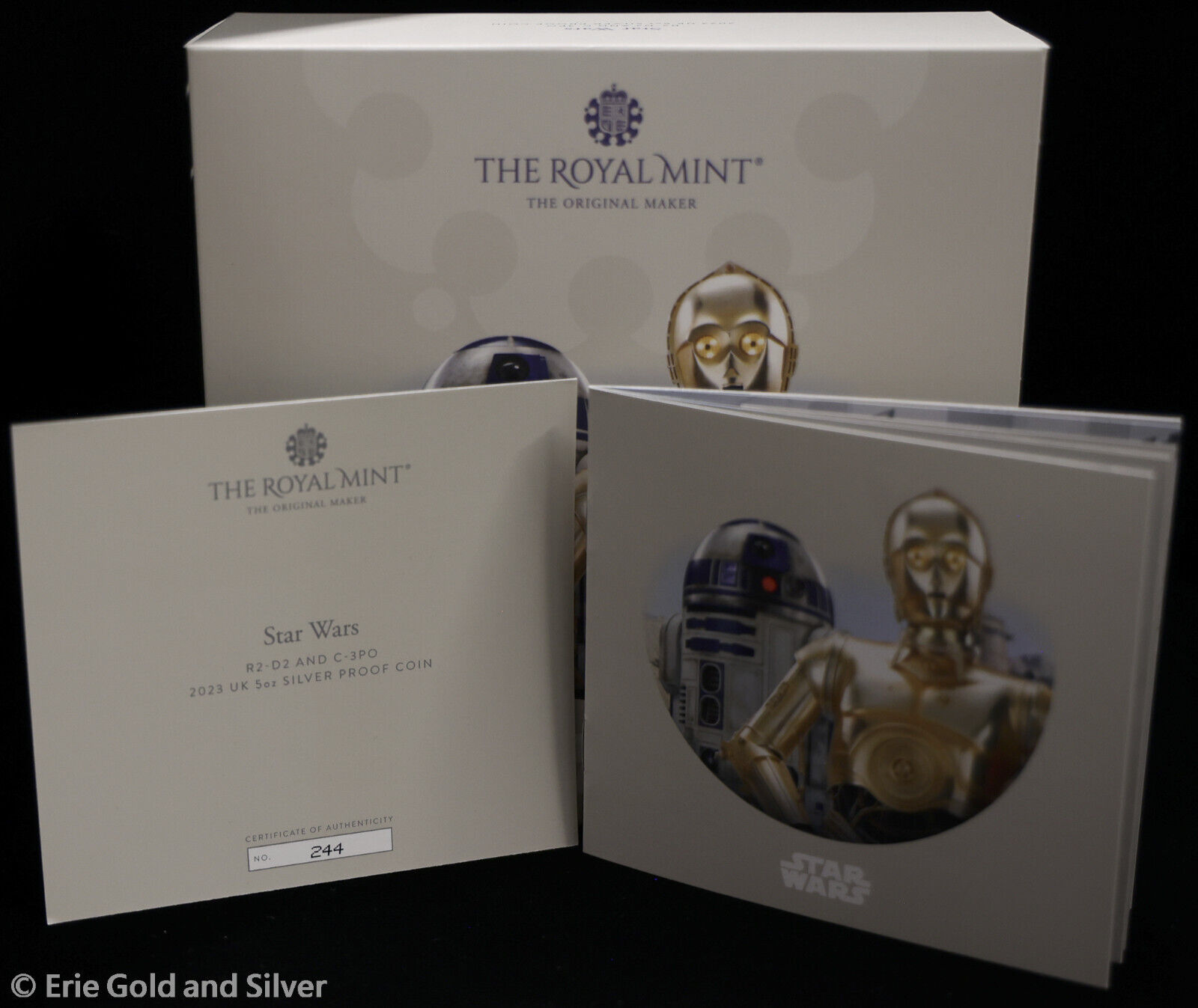 For sale is a 2023 Niue Star Wars R2-D2 & C-3PO 5 oz Silver Coin OGP BOX & COA ONLY. View pictures for details and condition. There are multiple available, so the item you receive may not be the exact item pictured. However, it will be similar quality. Feel free to contact us with any questions.