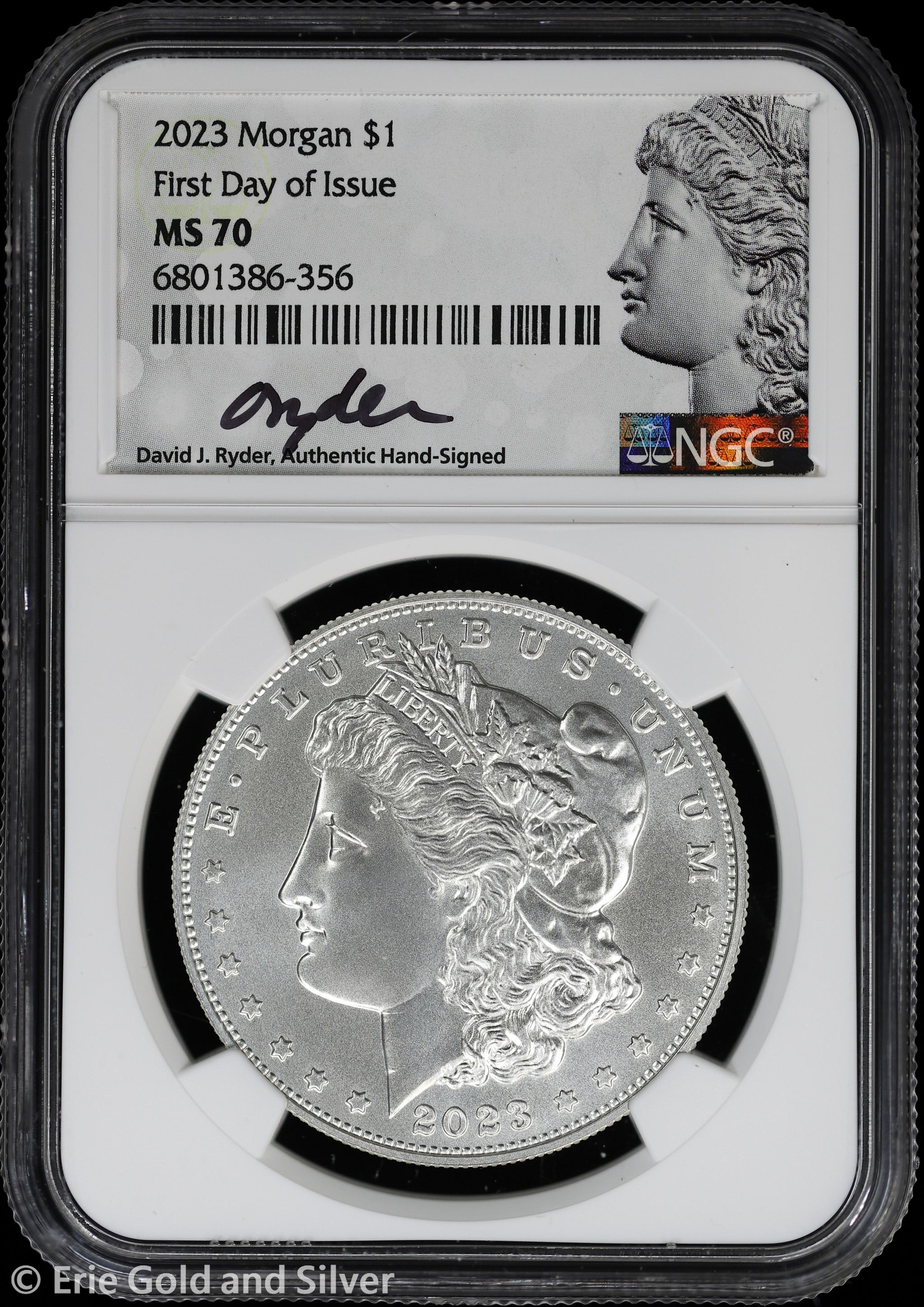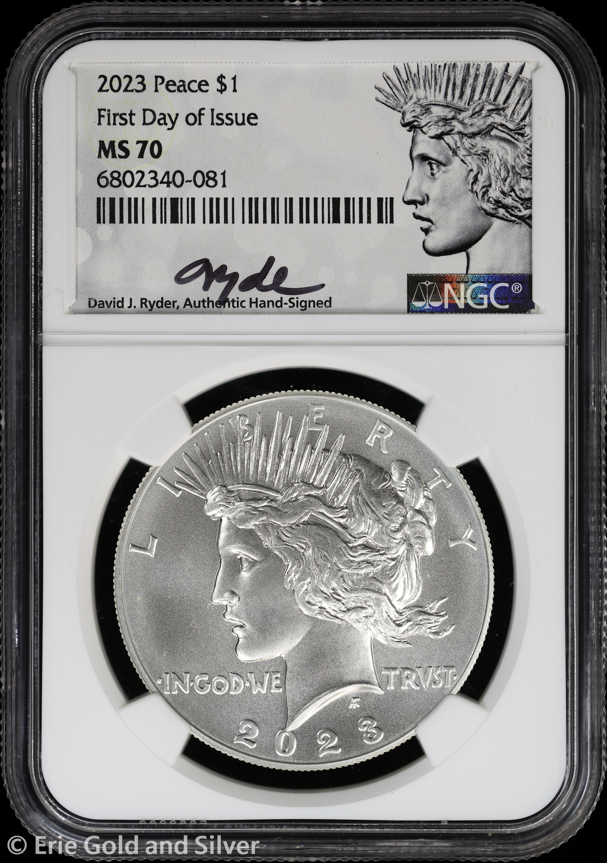 2023-P Morgan & Peace Silver Dollar 2-Coin Set NGC MS 70 | First Day of Issue, David J. Ryder Signed Slab