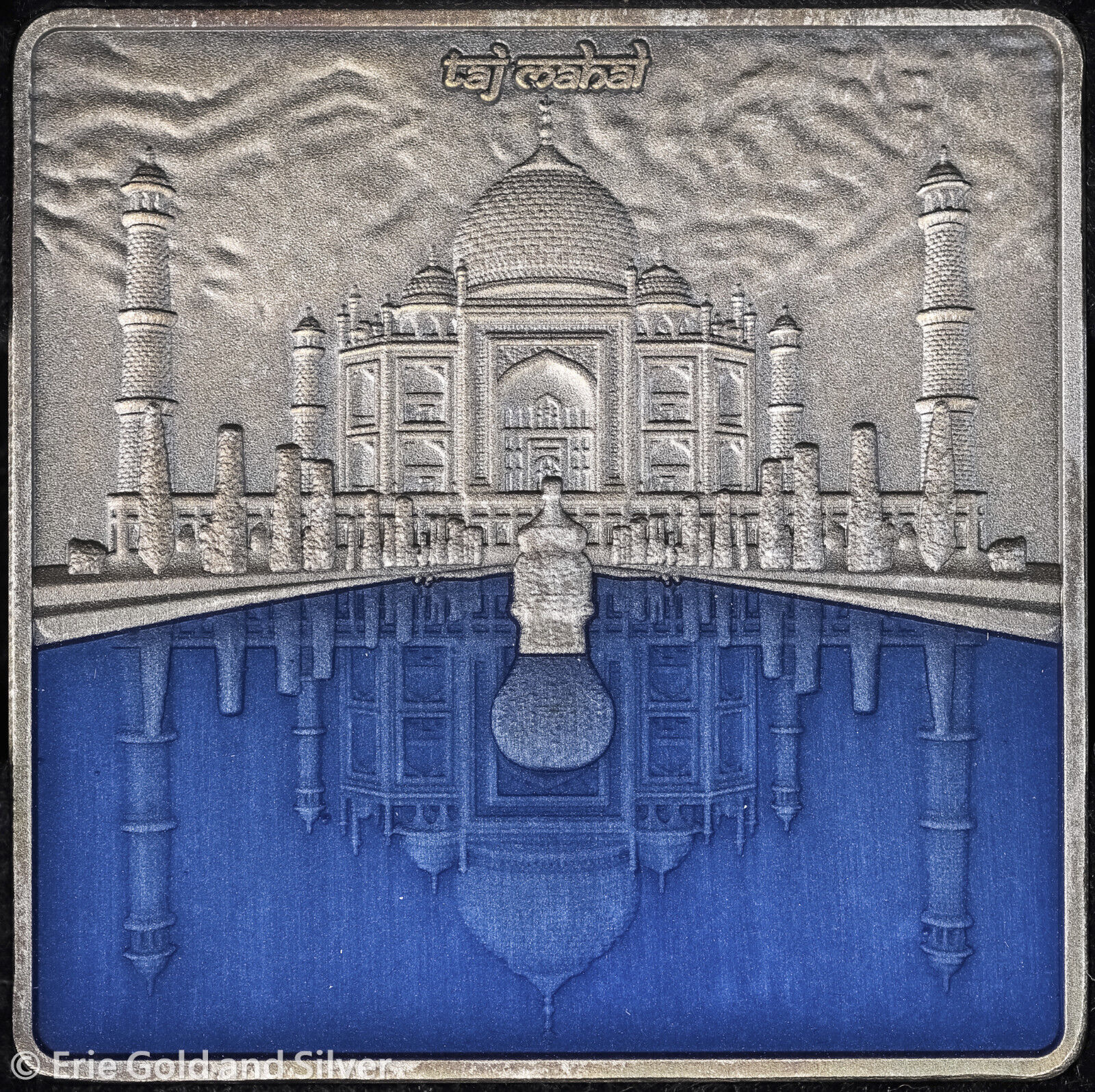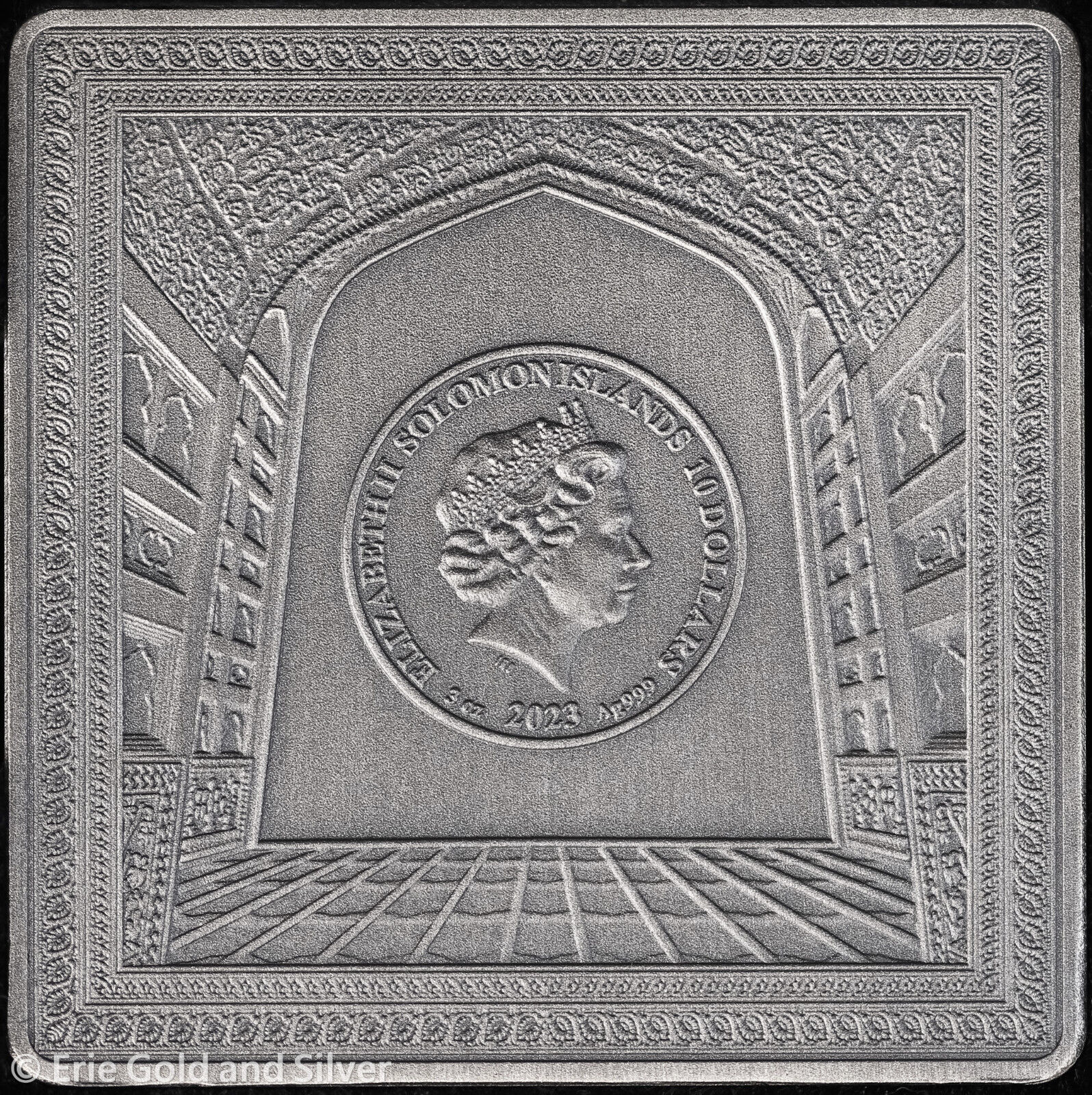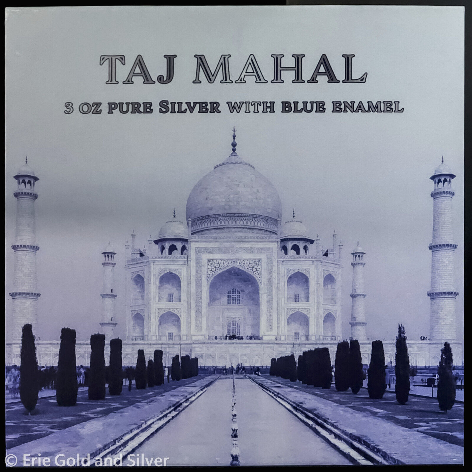 2023 Solomon Islands Taj Mahal 3 oz Silver Antiqued Coin w/ Blue Enamel in OGP