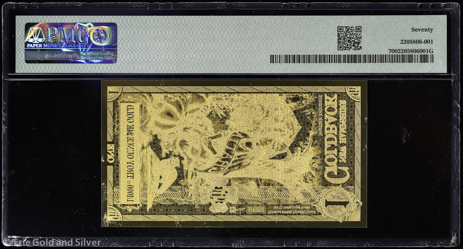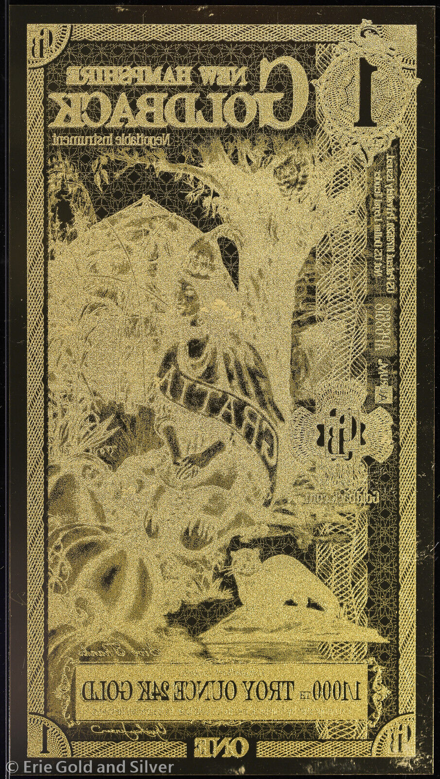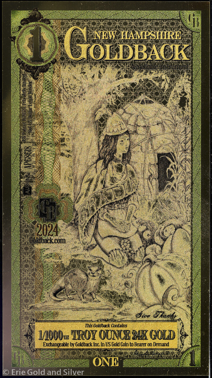 2024 $1 New Hampshire Goldback 1/1000 oz 24K Gold Foil Note PMG 70 Gold Back