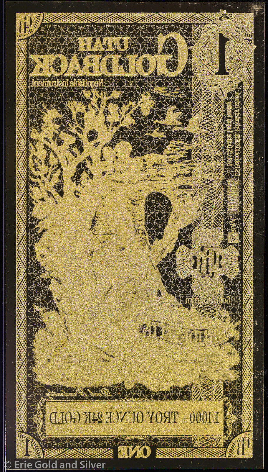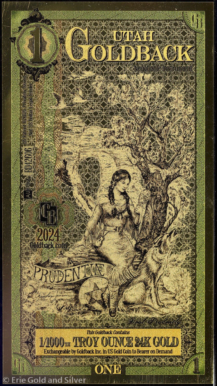 2024 $1 Utah Goldback Prudentia 1/1000 oz 24K Gold Foil Note PMG 70 Gold Back