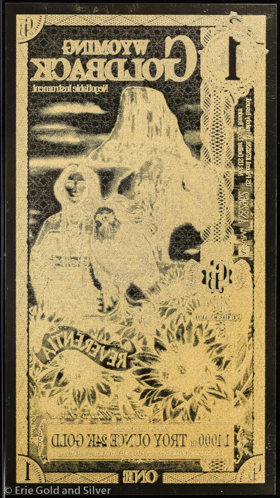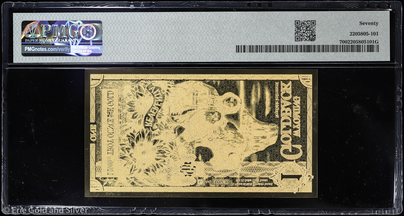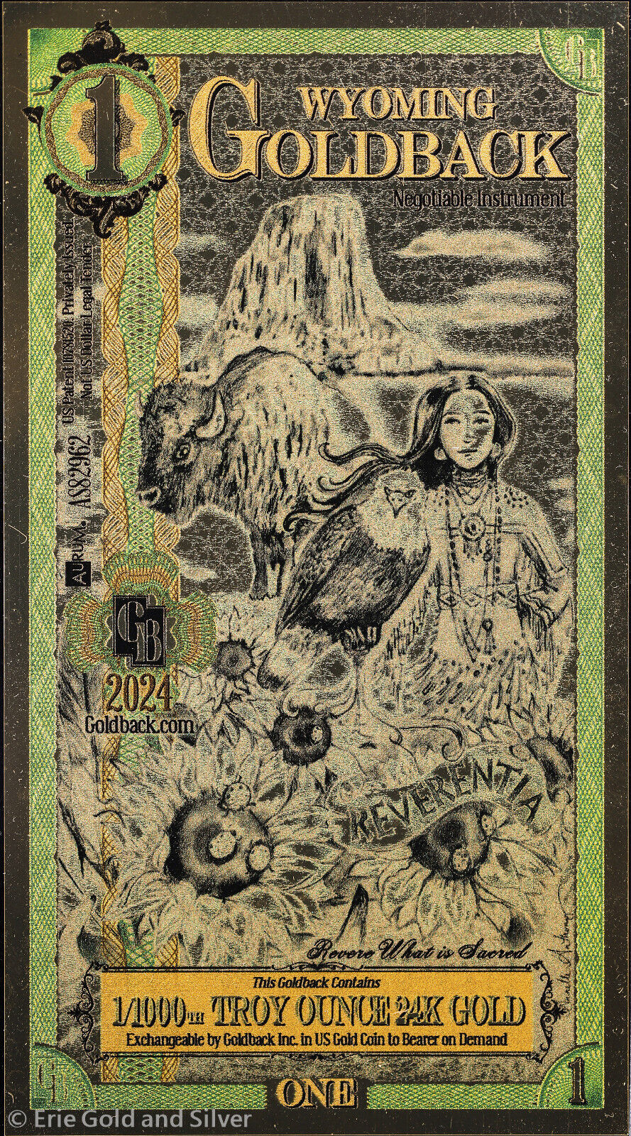2024 $1 Wyoming Goldback 1/1000 oz 24K Gold Foil Note PMG 70 Gold Back