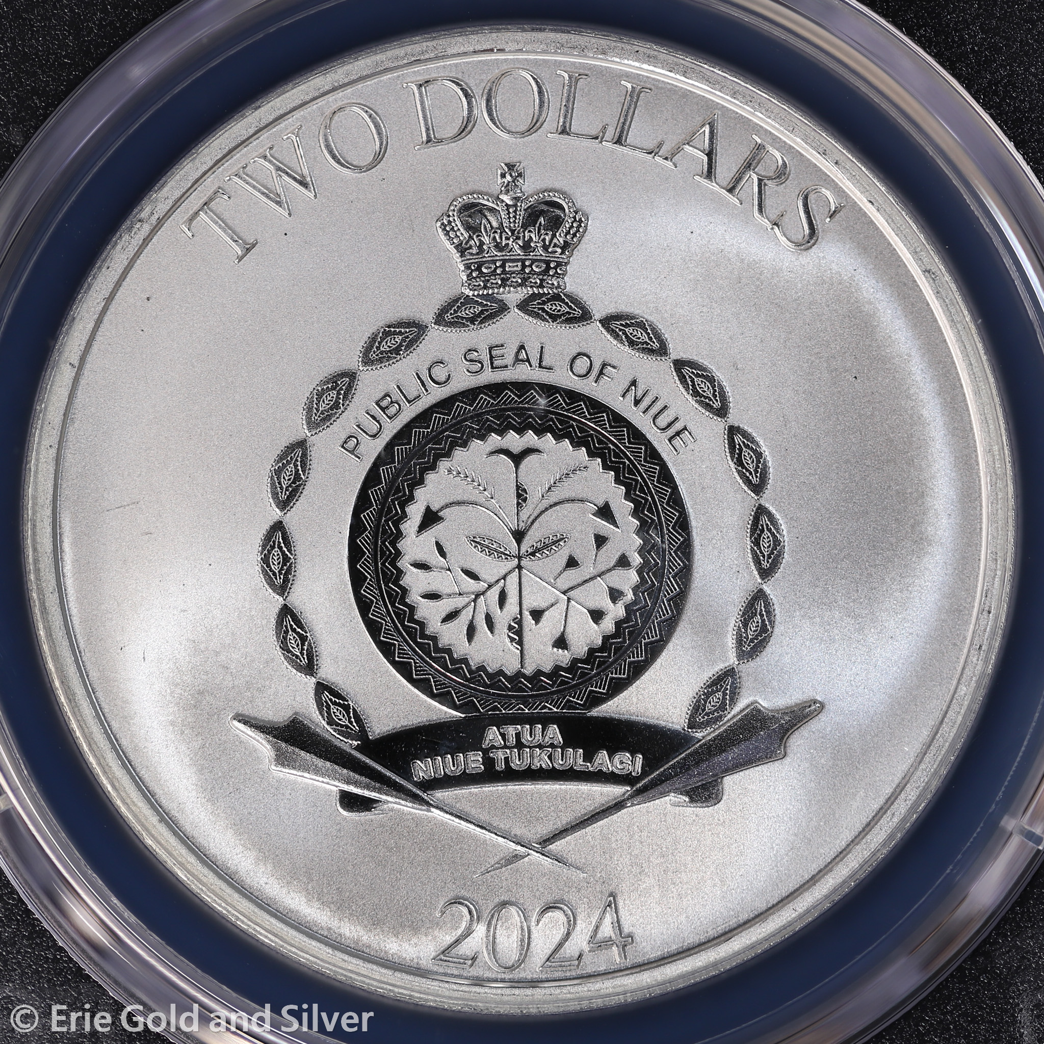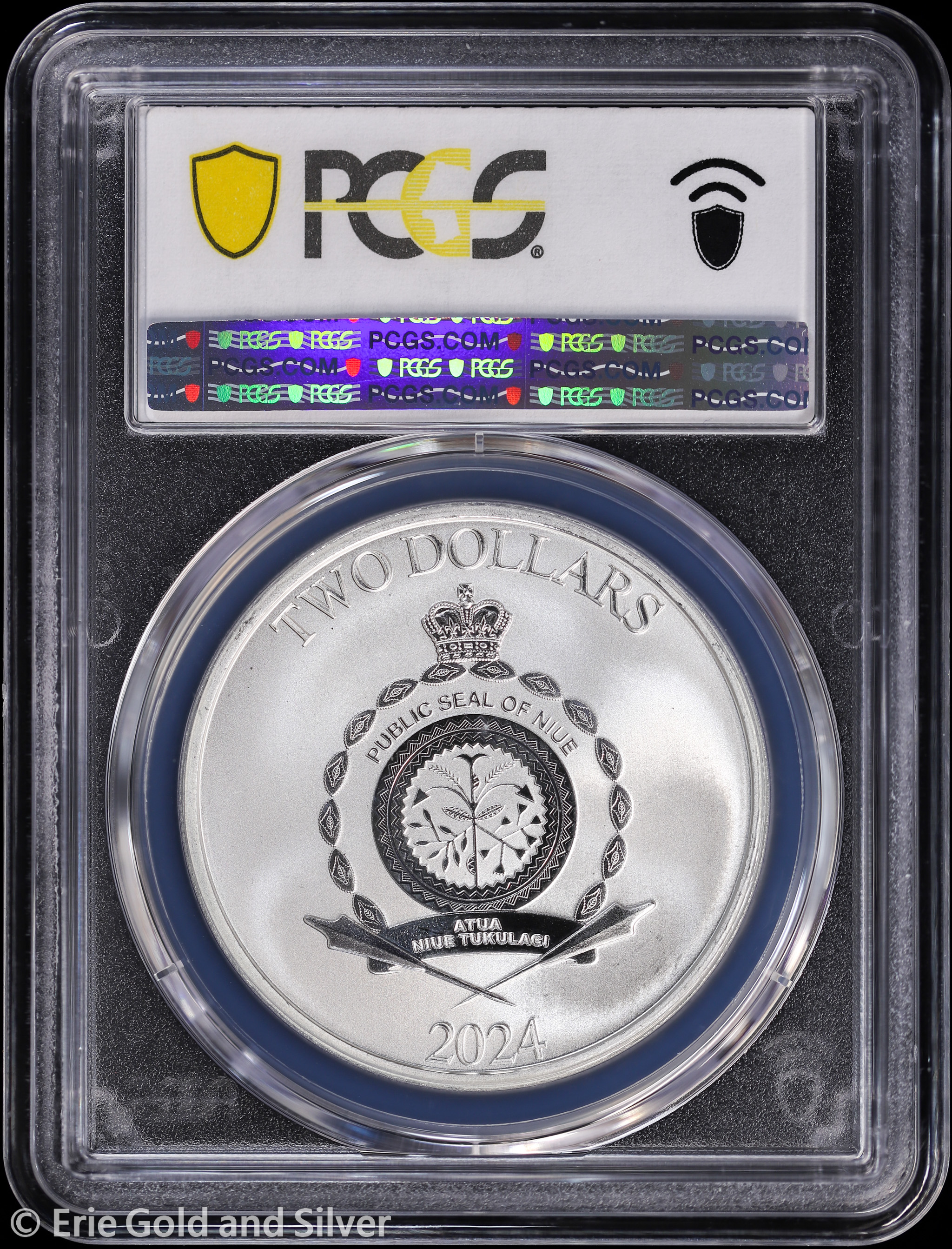 For sale is a 2024 $2 Niue Star Wars The Mandalorian - Grogu "Baby Yoda" 1 oz Silver Coin. Certified / graded by PCGS at MS 69.