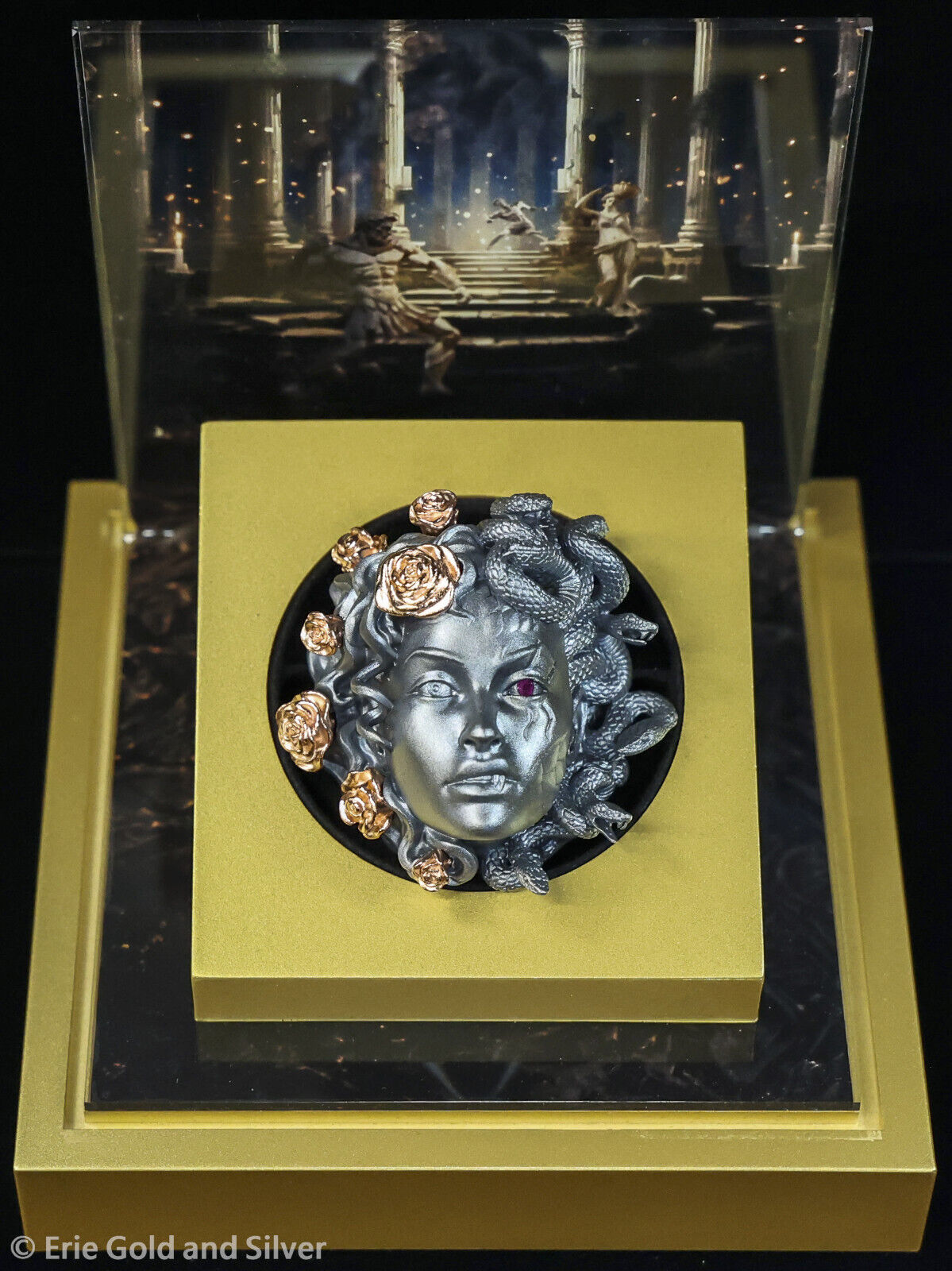 2024 $5 Barbados 3 oz Silver Medusa Shaped Antique Finish Coin in OGP