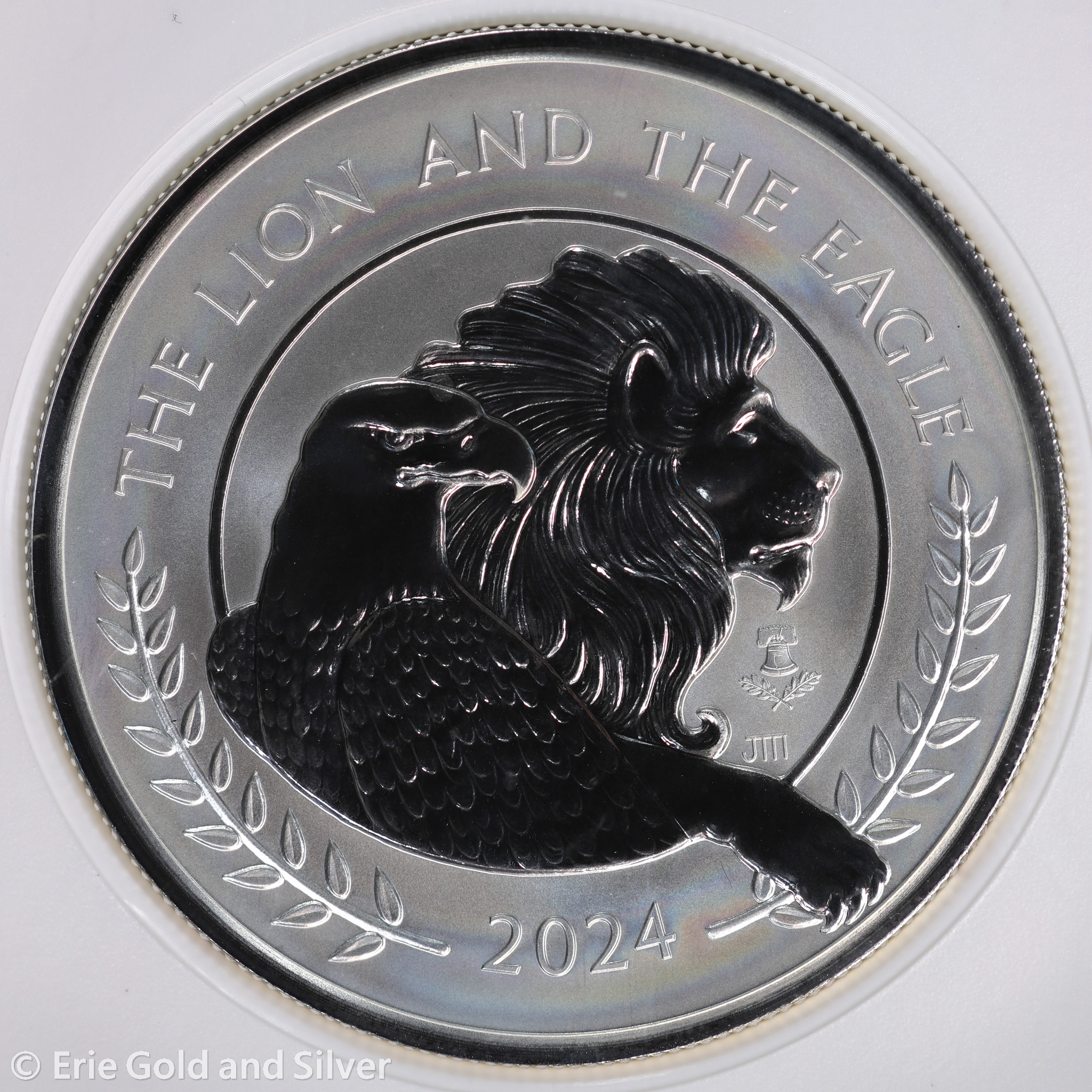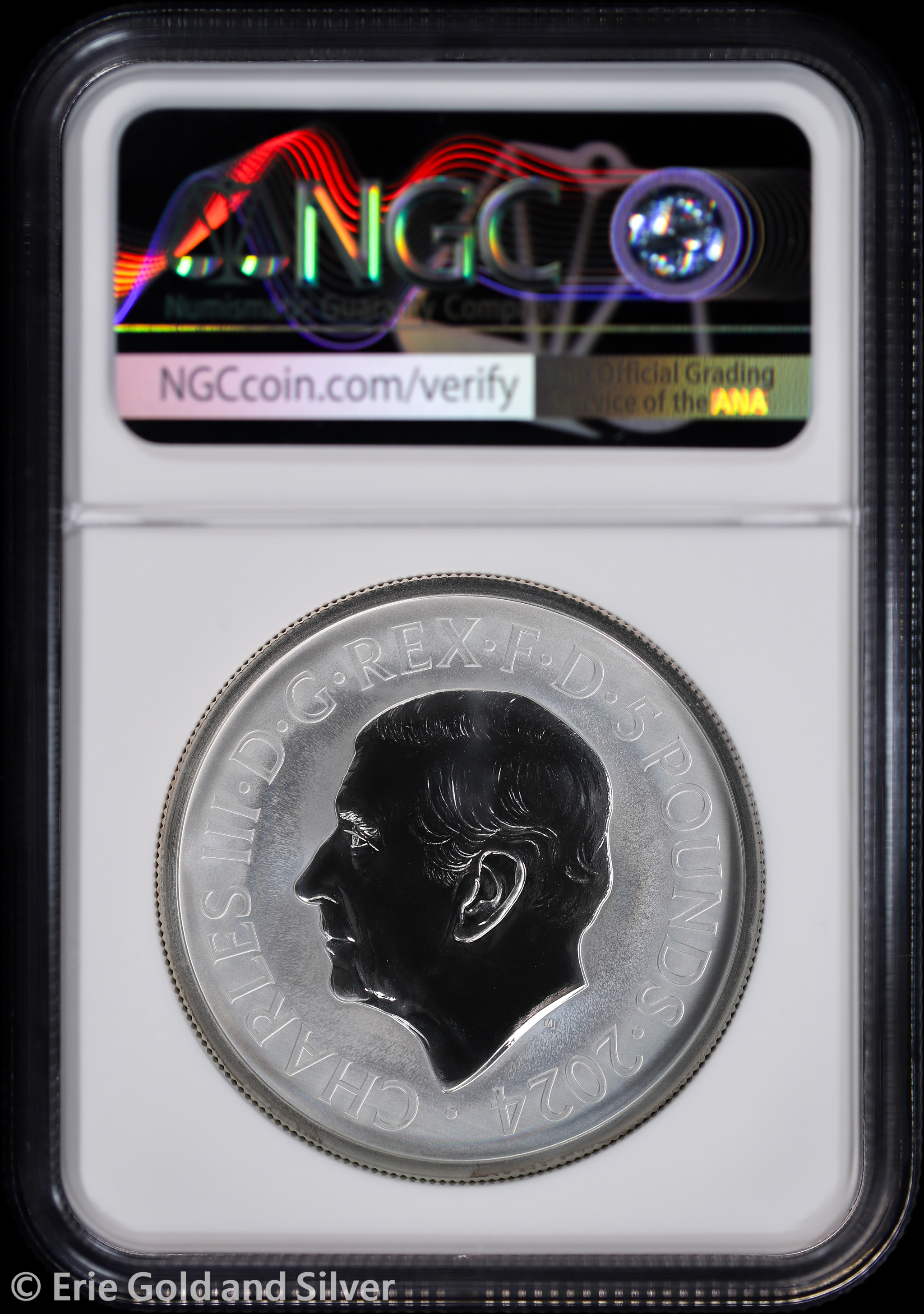 For sale is a 2024 £5 Great Britain Reverse Proof Lion & Eagle 2 oz Silver Coin. Certified / graded by NGC at PR 70.