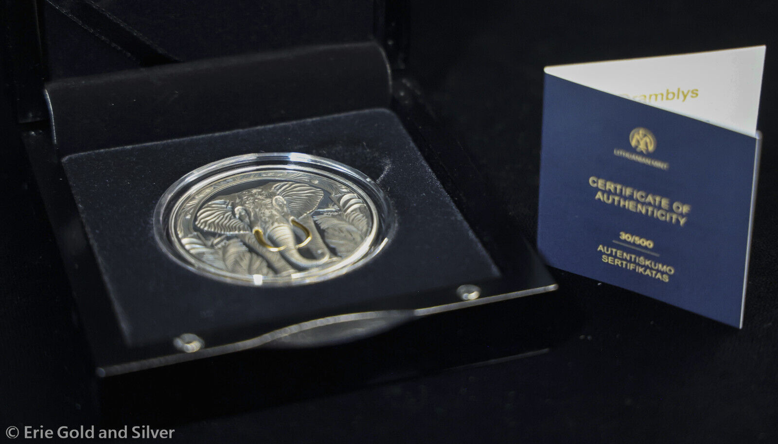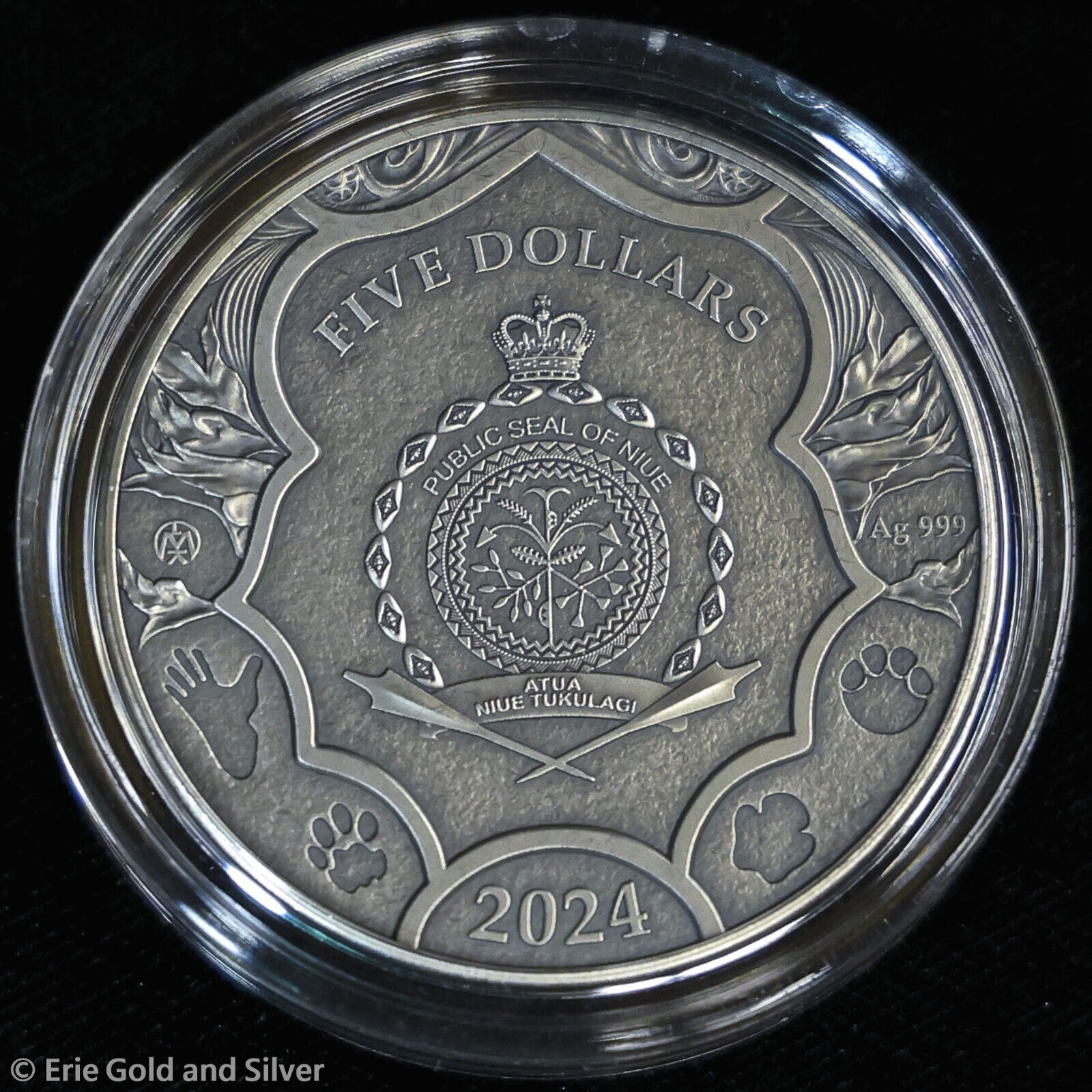 2024 $5 Niue 2 oz Silver Black Proof Antique Finish Elephant Coin in OGP