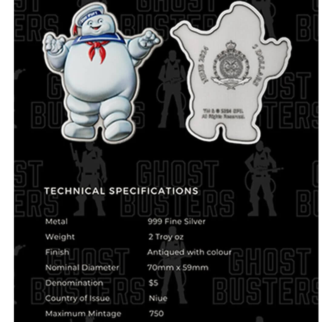 2024 $5 Niue Ghostbusters Stay Puft 2 oz Silver Colorized Coin in Ghost Trap Box