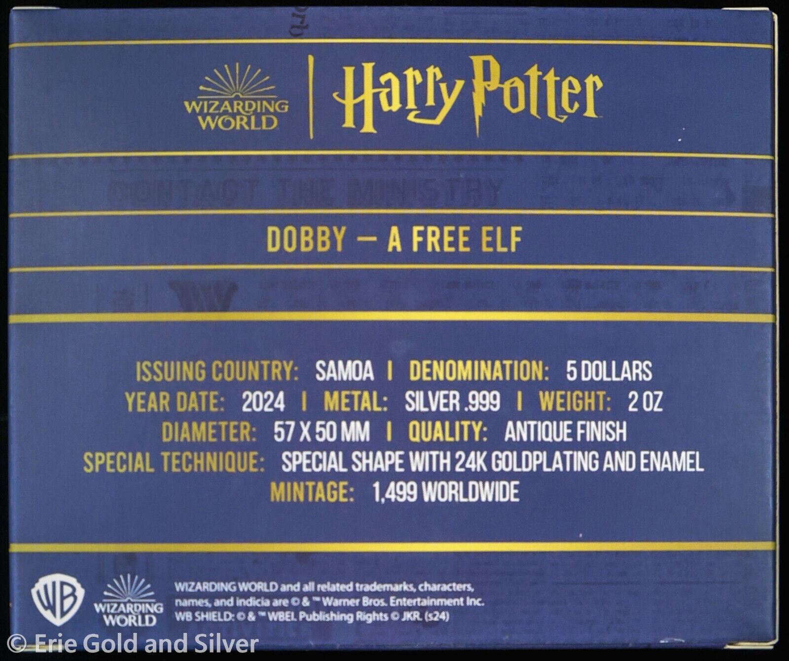 2024 $5 Samoa Harry Potter Dobby - A Free Elf 2 oz Silver Coin in OGP